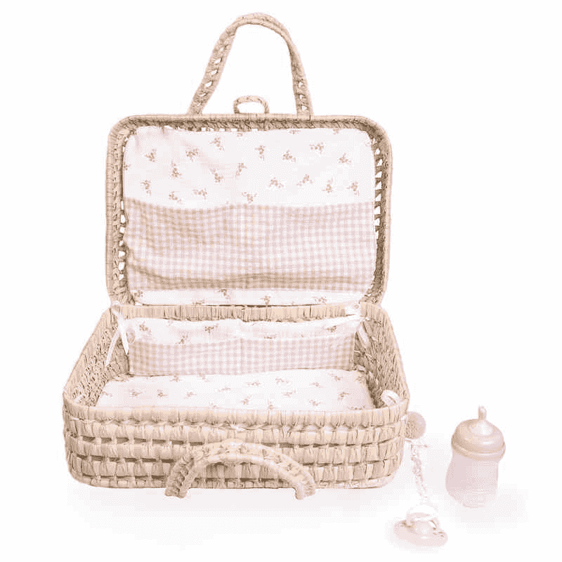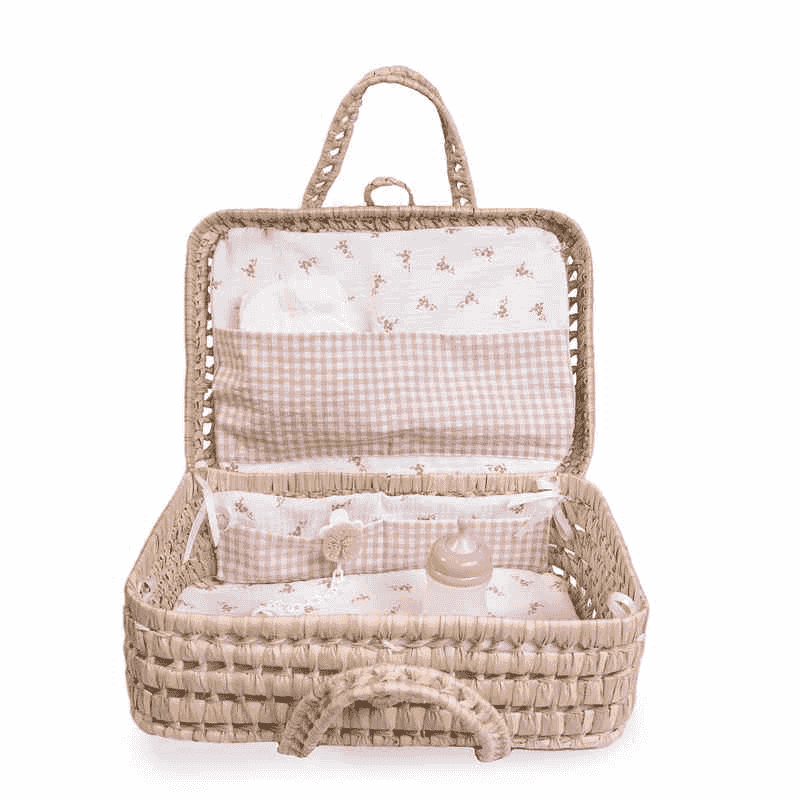 Maletín para guardar los accesorios de la muñeca, de palma natural