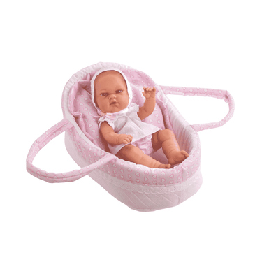 Bebe de 33 cm con Capazo Exclusiva Toy Planet, Es una muñeca bebé que forma parte de la distinguida colección de muñecas Arias. Estas muñecas son realmente adorables por los detalles bien cuidados de su expresión. Este bebé muy suave y delicado y a niñas y niños mayores de tres años les gustará tenerlo entre sus brazos.