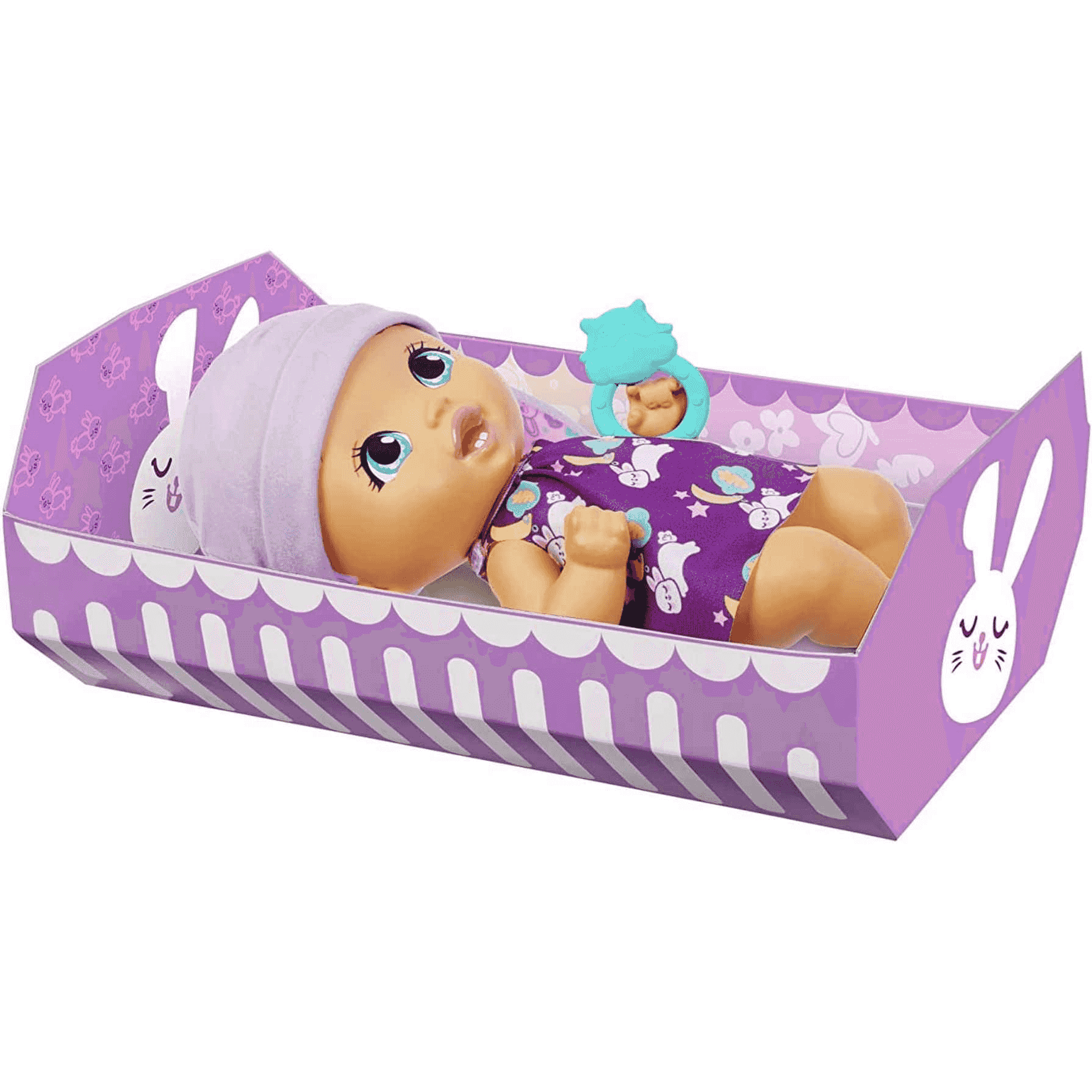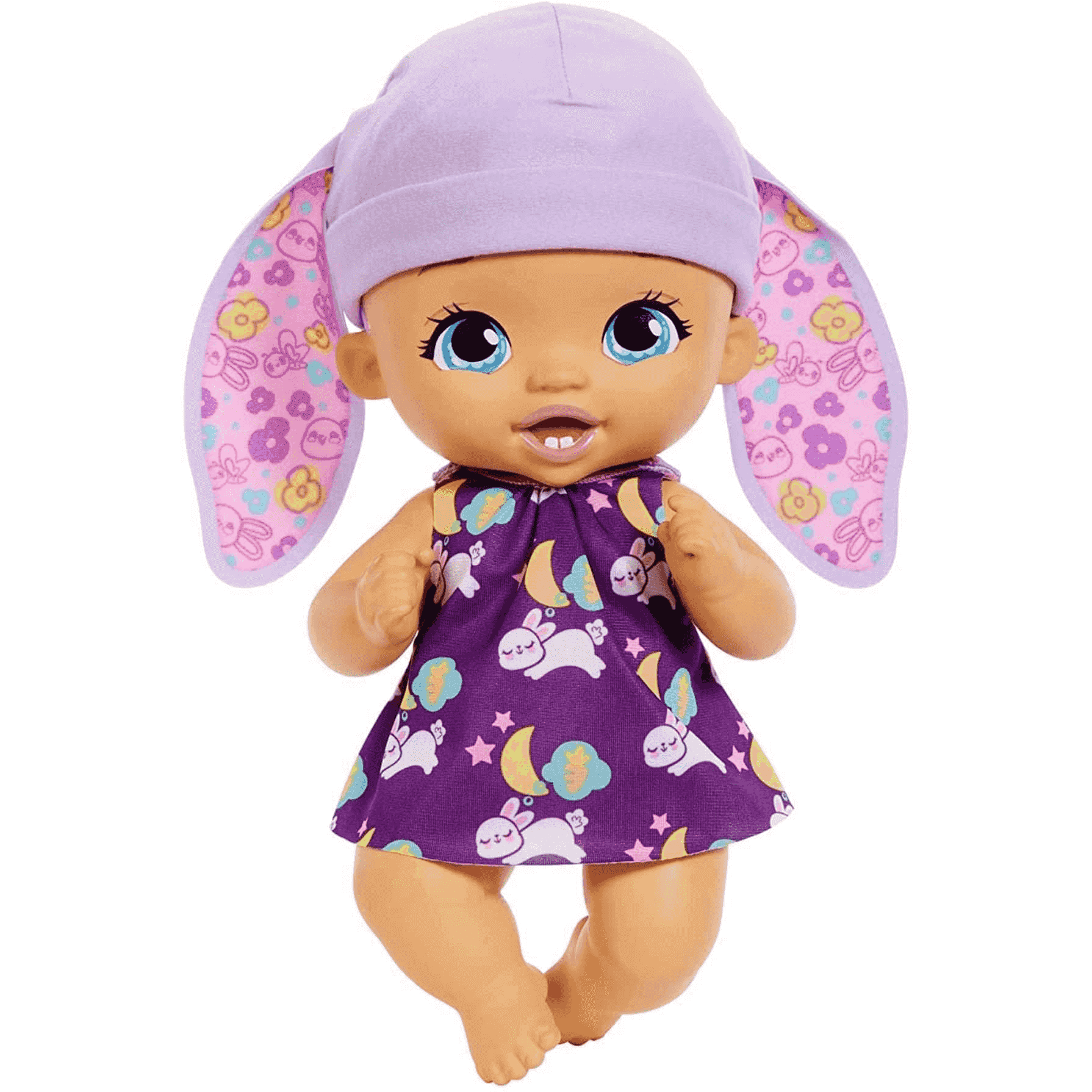 Muñeca Brush & Smile Little Bunny Baby de My Garden Baby (30,5cm) con 3 accesorios y atuendo 2 en 1, gorro lavanda. muñeco bebé 3 años