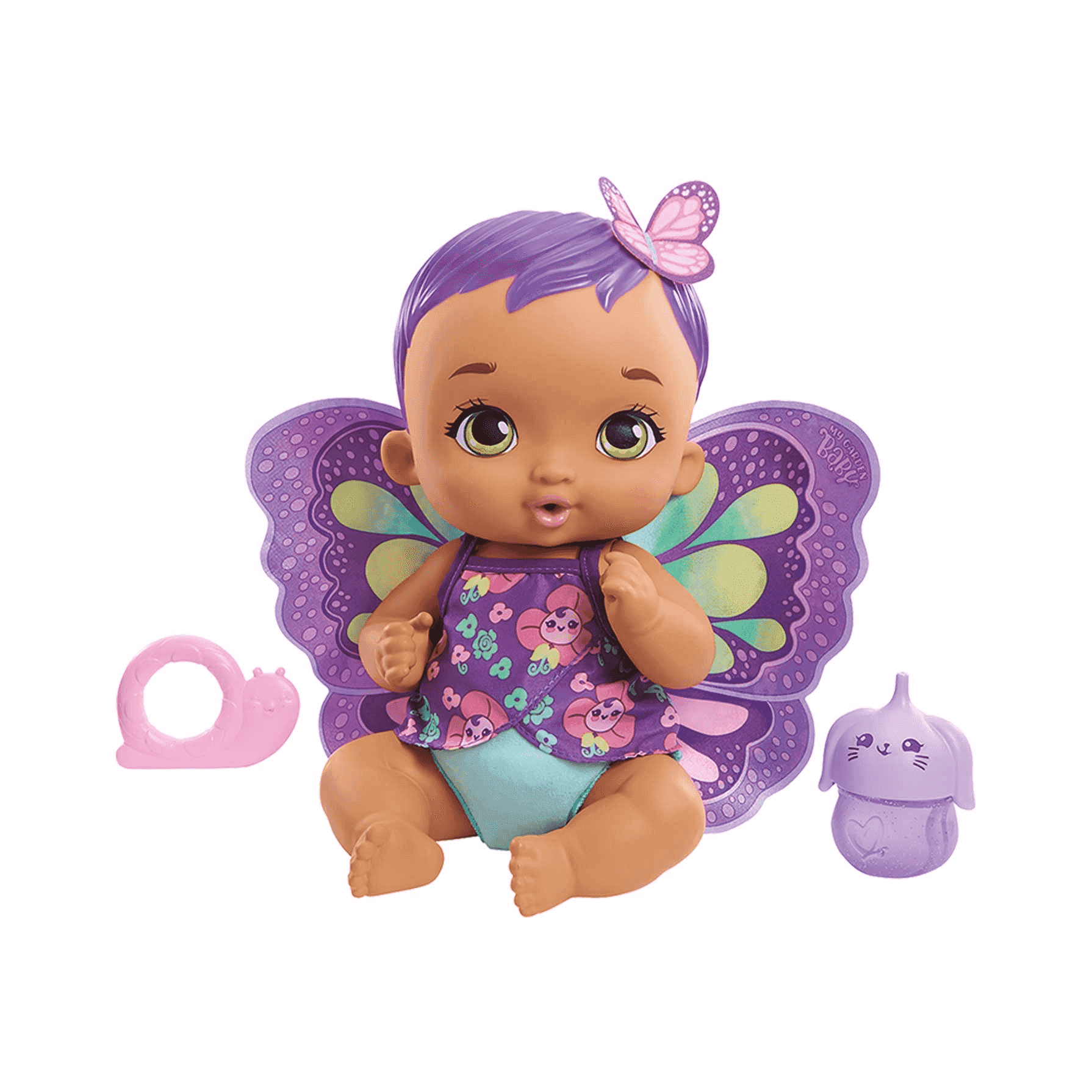 Las muñecas My Garden Baby se caracteriza por pertenecer a un reino de bebés con alas suaves de mariposas, cabello fantástico y un dulce aroma de jazmín. Desarrolla en los pequeños de la casa la capacidad de ser afectivo al tener que cuidar a la muñeca y alimentarla. Además, puede desarrollar las habilidades motrices por tener que utilizar ciertos accesorios.