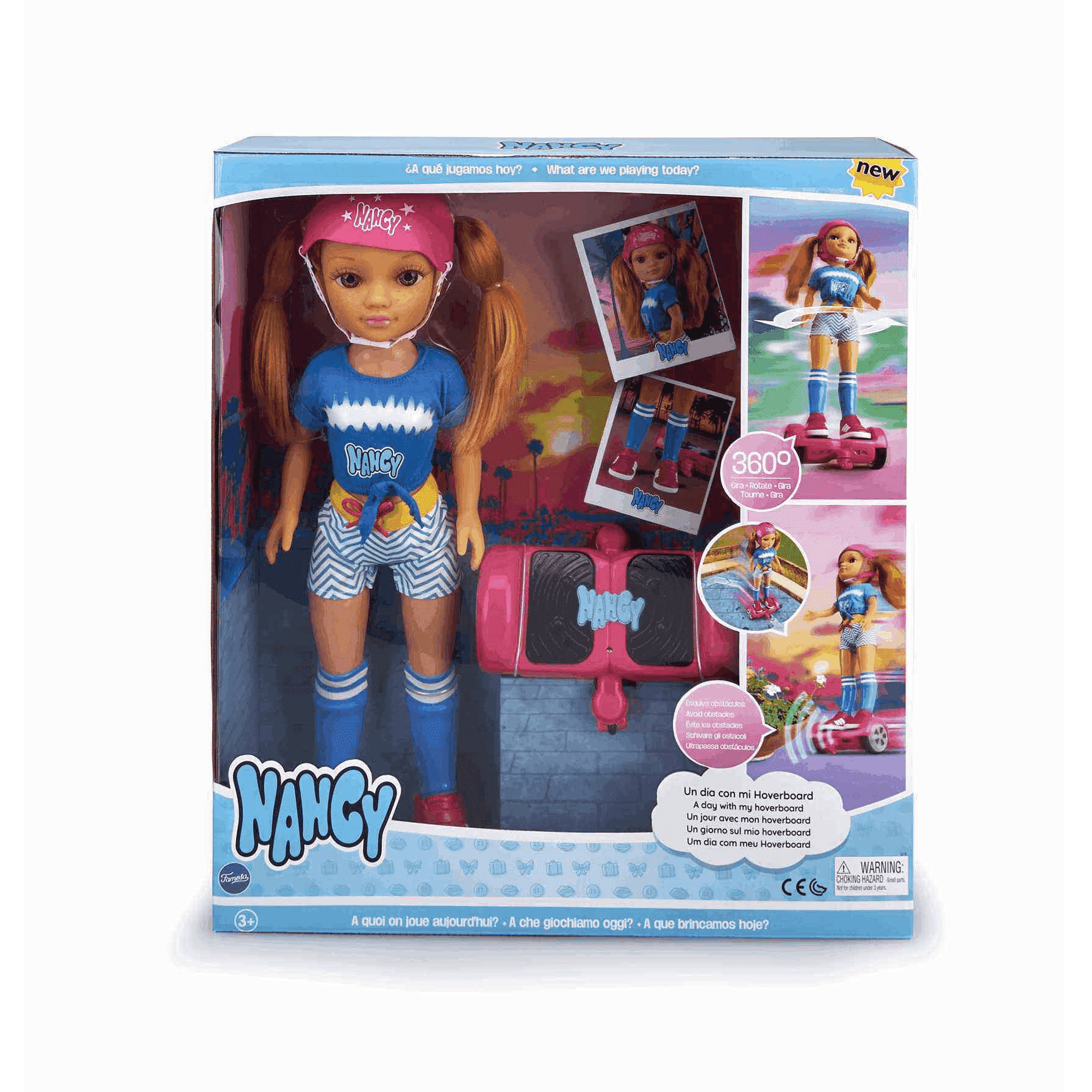 Esta Nancy colección es un juguete electrónico con pilas, y está diseñada para hacer piruetas muy entretenidas. ¡Su hoverboard es real! Funciona y se mueve tanto hacia adelante y atrás, como en giros de hasta 360°; divirtiendo a todos en casa.