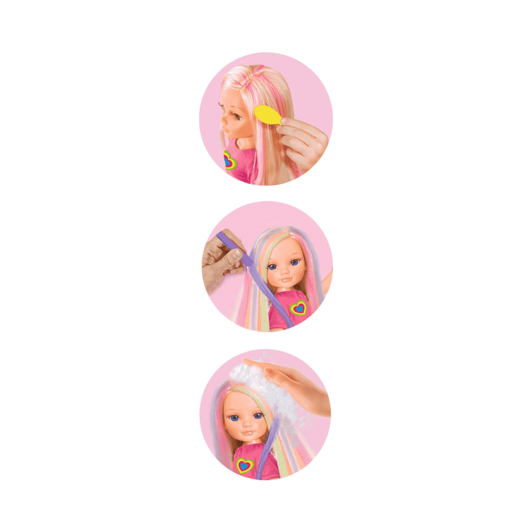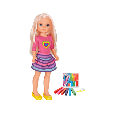 Cepilla el pelo de Nancy y pasa el día creando sus mechas de colores con las tizas de arcoíris. La muñeca Nancy y sus accesorios están recomendados para las niñas y niños mayores de tres años.