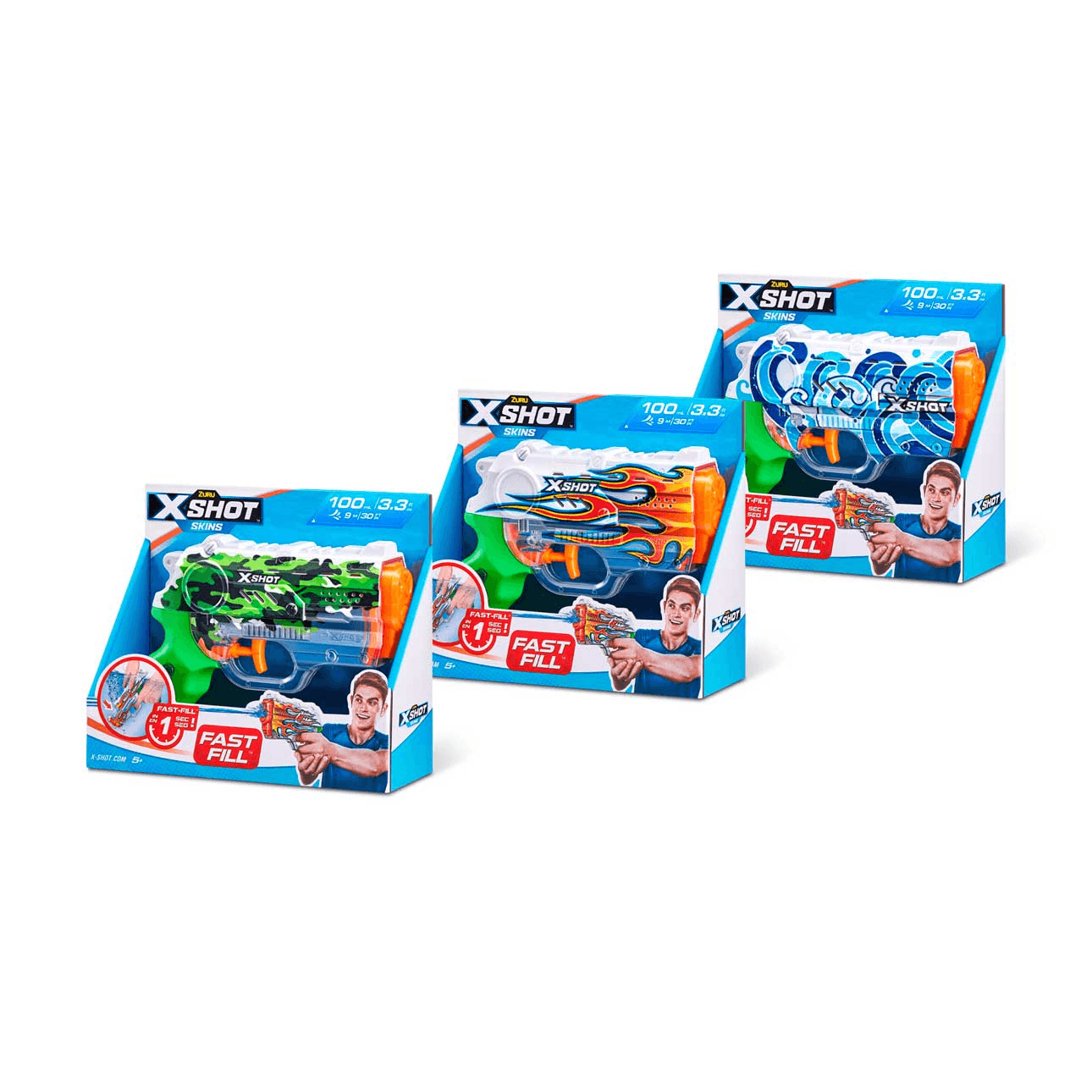 Aquí están las pistolas de agua Nano Skins Fast Fill, X-Shot de la reconocida marca Zuru, ¡perfectas para refrescarse en verano y luchar con amigos!