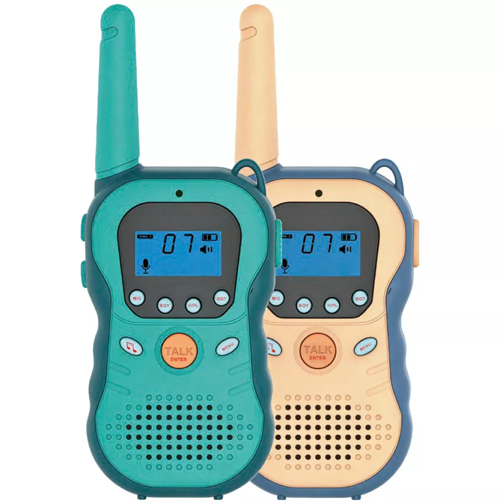 ¿Qué es y qué incluye? Se trata de un set de walkie talkies infantiles que permite la transmisión de radio a larga distancia, según indica el fabricante en el envase. El conjunto incluye dos dispositivos portátiles con antena, pantalla frontal y botones de control adaptados a manos infantiles. Están pensados para comunicarse entre sí de manera sencilla durante el juego. El alcance exacto de la señal y el tipo de alimentación no se especifican claramente en el packaging visible. Información no disponible.