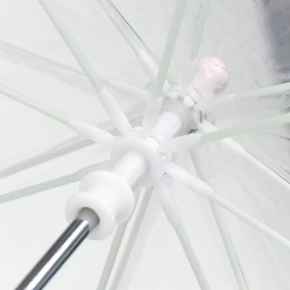 El Paraguas burbuja Frozen es perfecto para protegerse de la lluvia con estilo. Fabricado por Artesanía Cerdá en material POE, su diseño transparente permite ver todo lo que te rodea mientras estás cubierto por las mágicas imágenes de Elsa, Anna y copos de nieve.