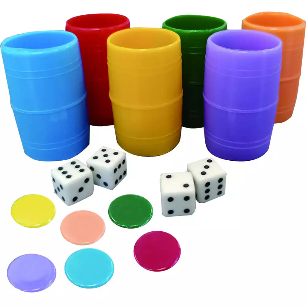 - 6 cubiletes de colores para que cada jugador tenga el suyo.