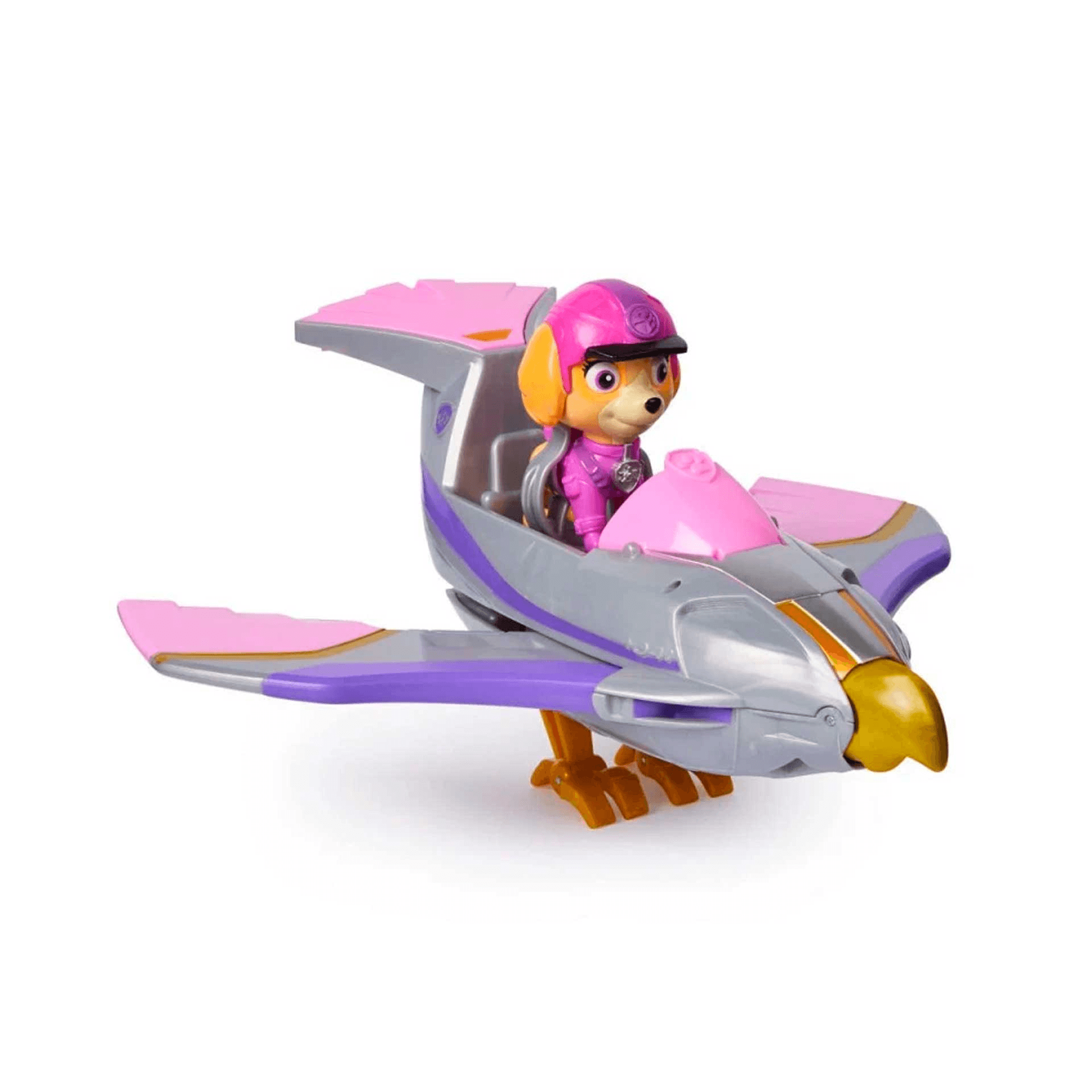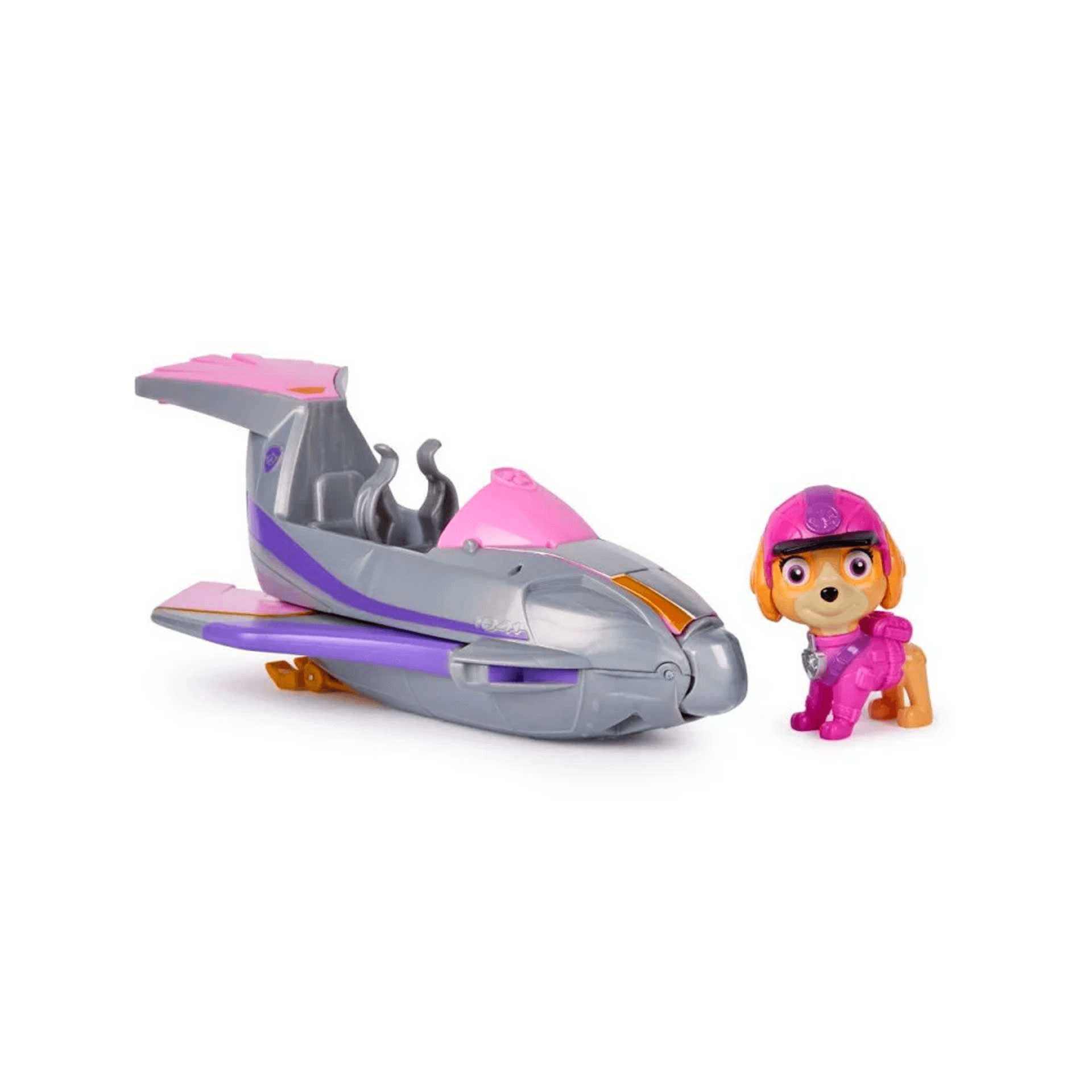 - Incluye figura de Skye: La figura extraíble de Skye viene con su clásico uniforme rosa y su casco, lista para cualquier aventura aérea.