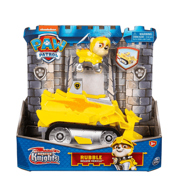 Para divertirte todavía más, consigue el escenario Castle HQ y colecciona todos los vehículos Deluxe de PAW Patrol Rescue Knights (los escenarios y los vehículos de juguete se venden por separado). Prepárate para las misiones de rescate con Rubble y su vehículo Deluxe Vehicle de Rescue Knights.