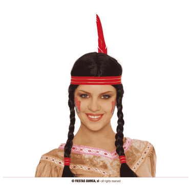 Peluca India con Cinta y Trenza Complemento Disfraz