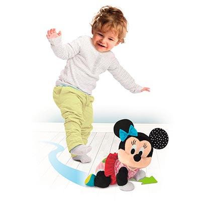 Recomendado para bebés a partir de 6 meses, Baby Minnie es suave, seguro y está diseñado para captar la atención de los niños mientras aprenden a moverse. Requiere 3 pilas (no incluidas), y es ideal para fomentar el gateo y la exploración en un entorno seguro.