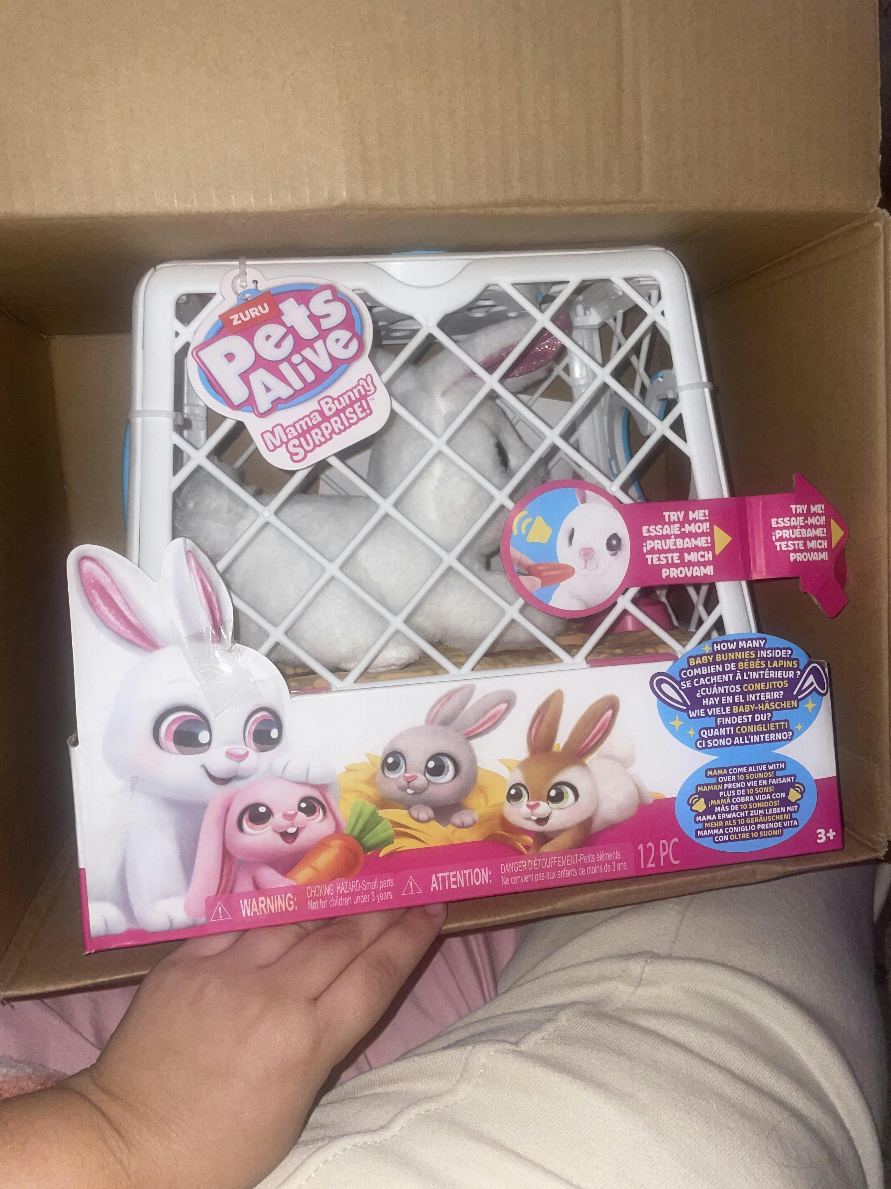 ¡Prepárate para una experiencia llena de ternura y sorpresas con el Peluche Interactivo Mama Bunny & Baby Surprise de Pets Alive! Este encantador juguete trae consigo una mamá coneja de suaves orejas y cola esponjosa, acompañada de sus adorables bebés escondidos en su acogedora casita.