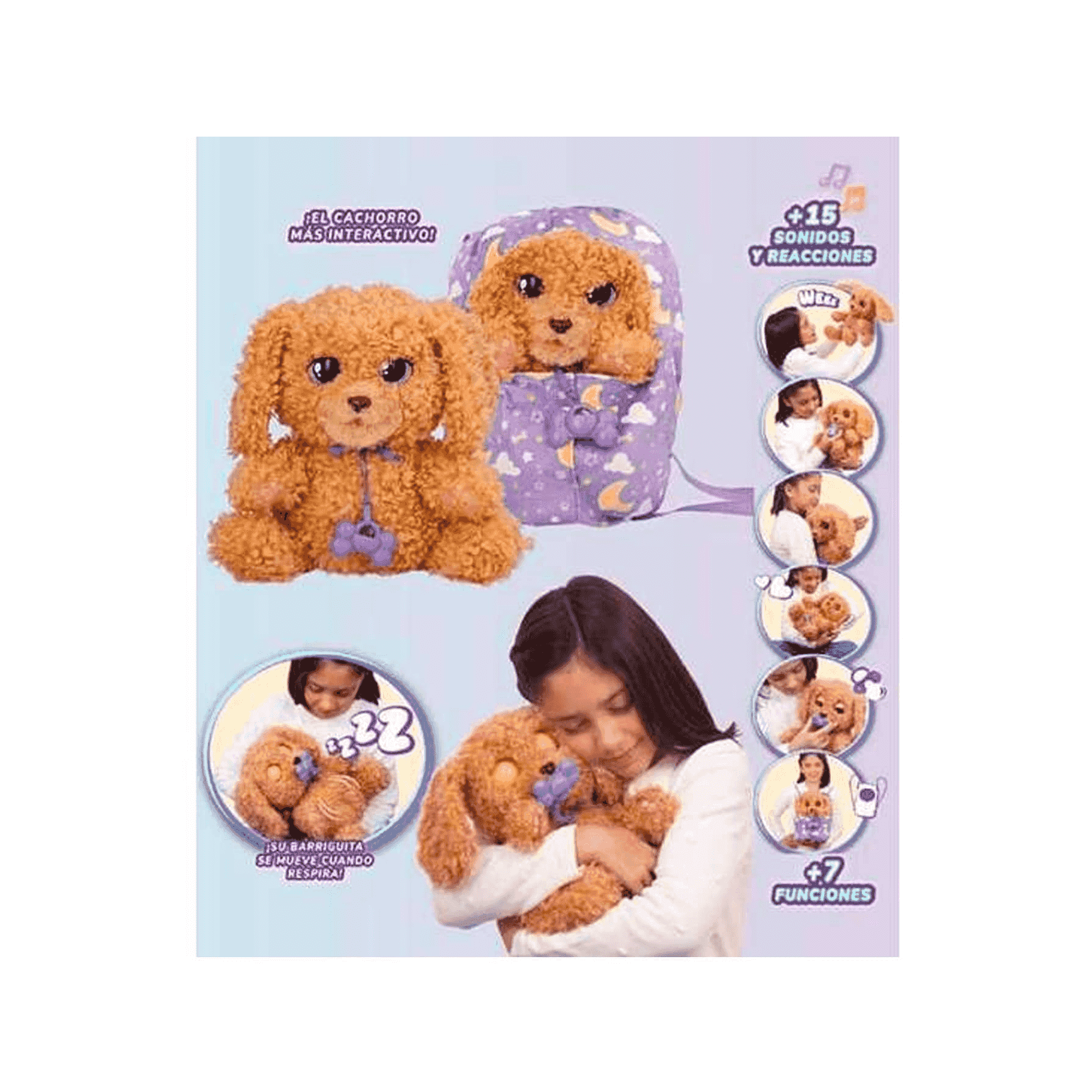 - Incluye accesorios como cepillo, peine y hueso de juguete