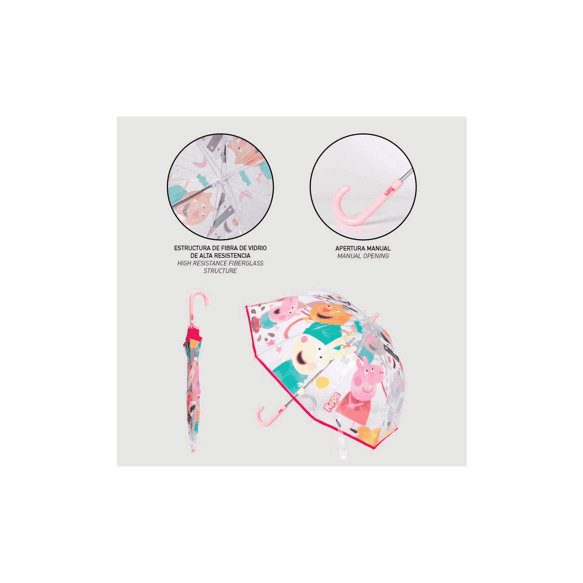 Además de ser práctico, este paraguas es una excelente manera de permitir que los niños expresen su amor por Peppa Pig y sus aventuras.