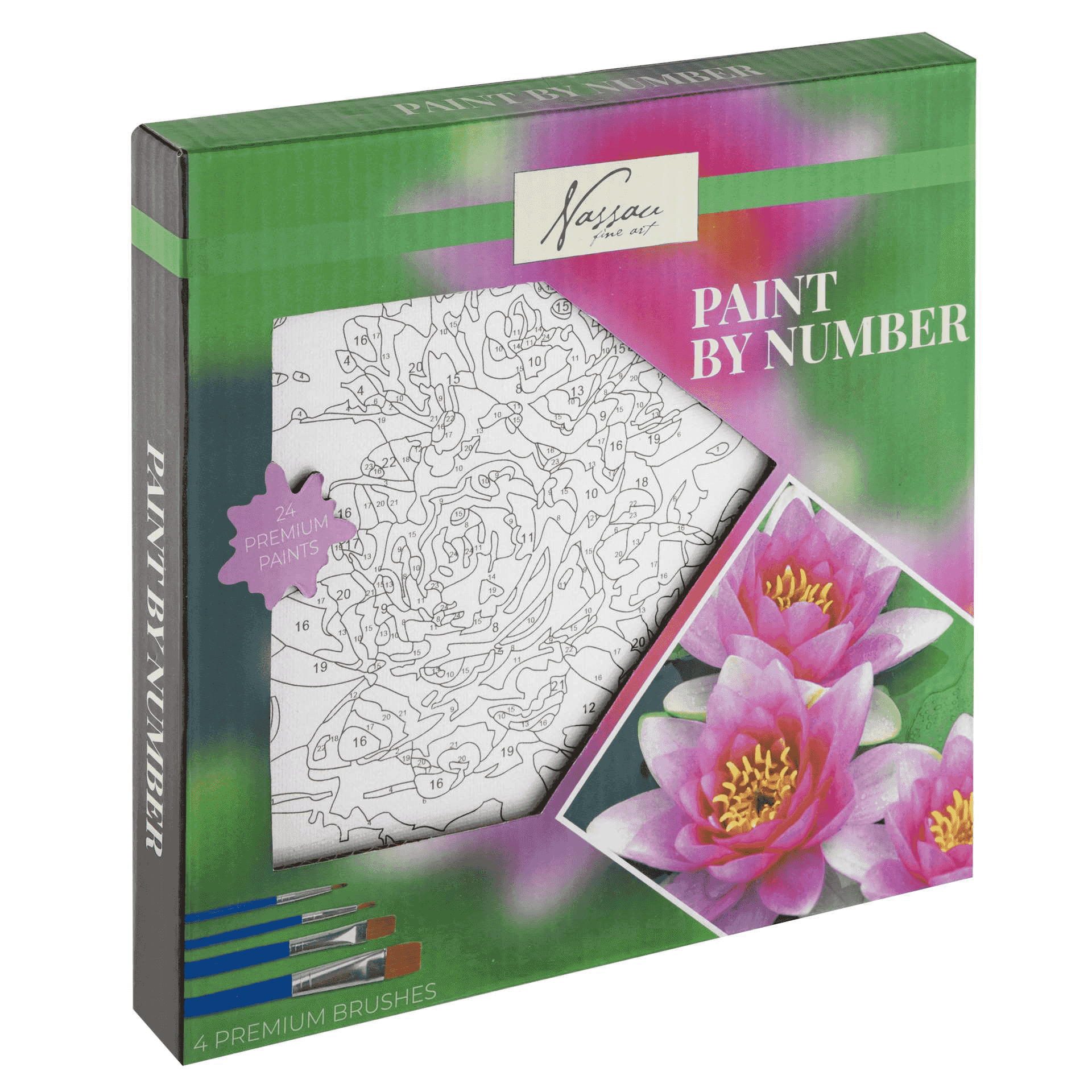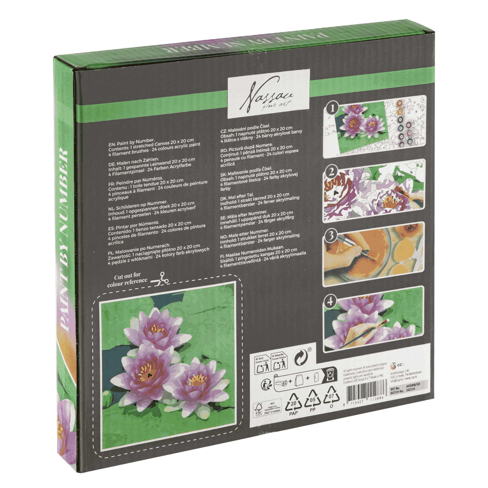 Pintura por números nenúfar 20x20 cm – Set con 24 colores y 4 pinceles Nassau