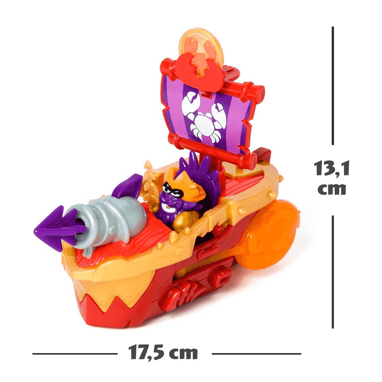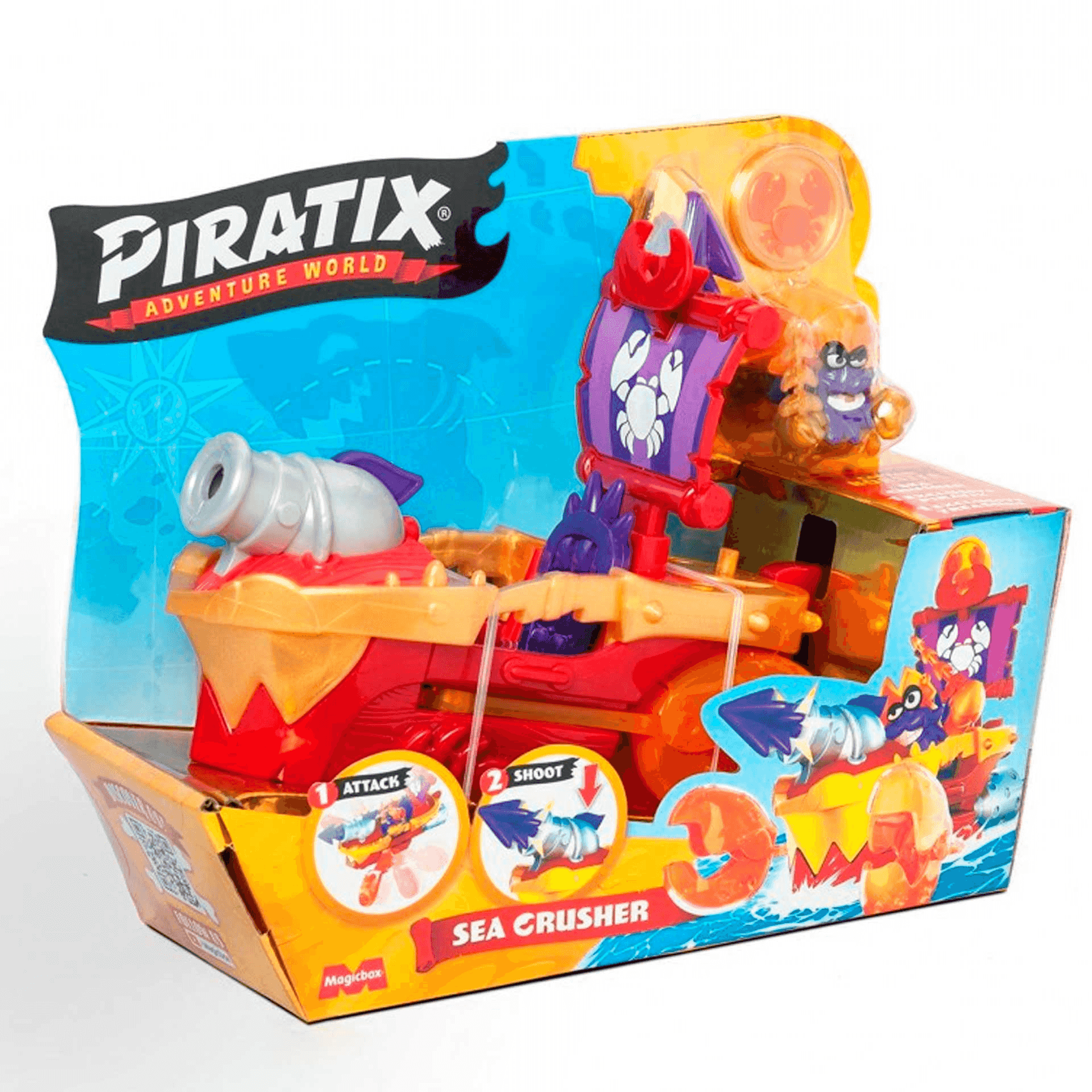 El Piratix Sea Crusher es una fantástica adición al mundo de los Piratix, diseñada especialmente para niños de entre 3 y 6 años. Este barco pirata no es cualquier embarcación, ¡tiene la forma de un temible cangrejo! Con sus pinzas y su cañón a bordo, este barco está listo para conquistar cualquier aventura en alta mar.