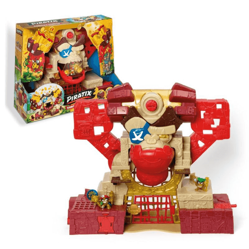 Solo los más astutos lograrán alcanzar el tesoro sin caer en las trampas de un gorila guardián… que puede devorarte si no estás guardando la distancia. Además, el set incluye 2 Piratix exclusivos y 4 monedas (una de ellas exclusiva) para que vivas cada partida como una nueva oportunidad de conquista.