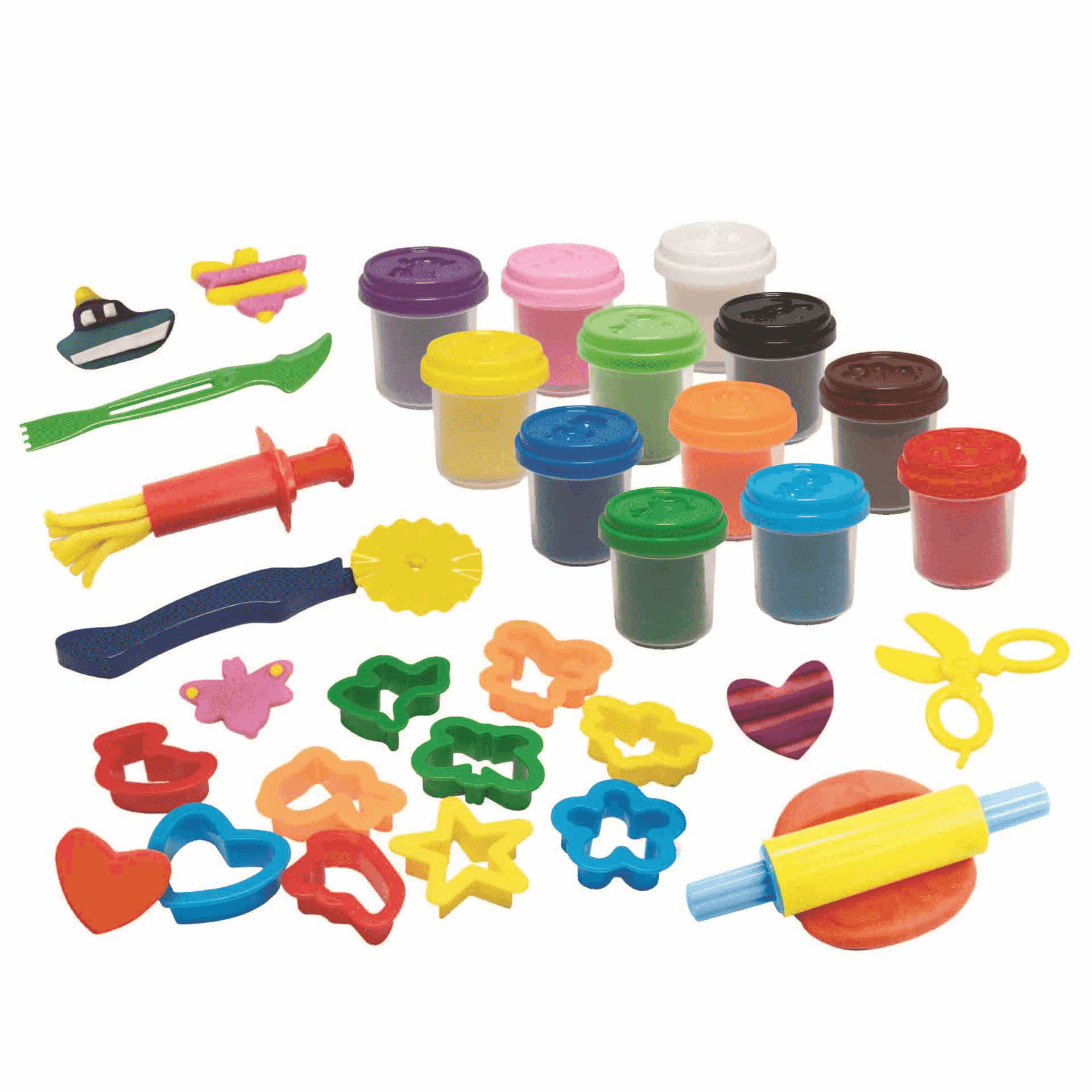 - Incluye 12 botes de plastilina de colores variados y vibrantes.
