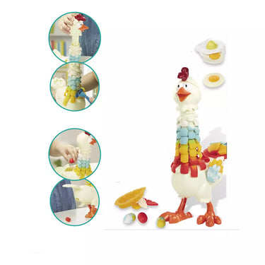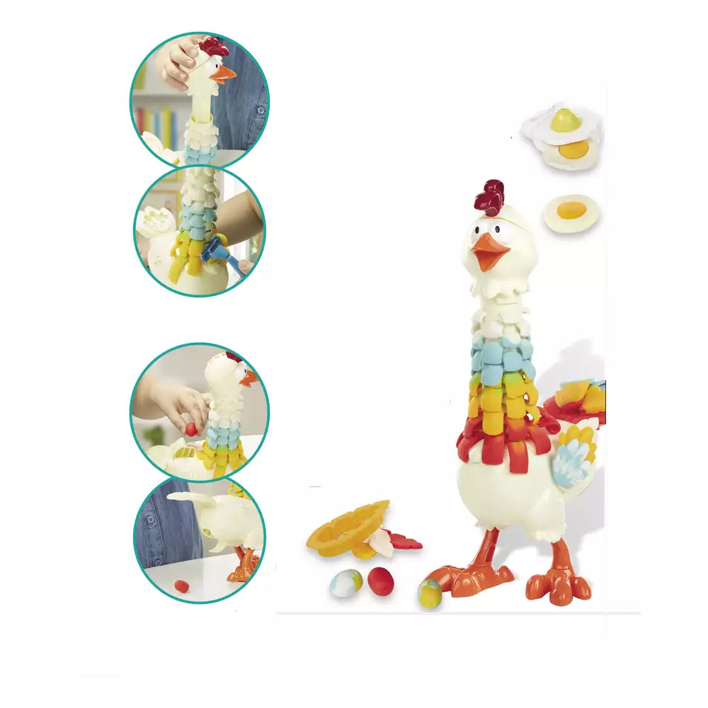 - Una gallina disparatada que crea plumas y huevos de plastilina.