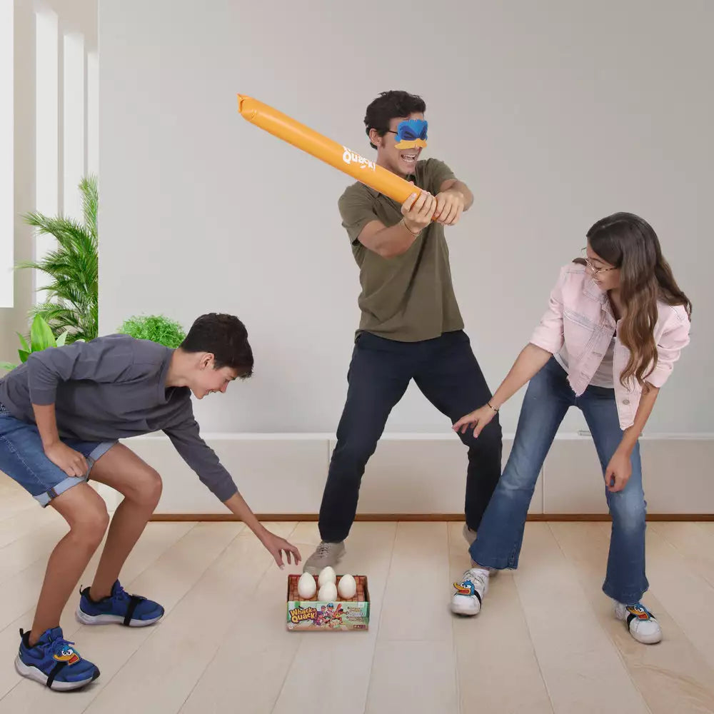 Con el juego Play Fun Whack-a-Quack, te adentrarás en una partida llena de risas, reflejos rápidos y sorpresas. Un jugador se pone la máscara y empuña el bate inflable para proteger los huevos, mientras los demás, con patas de pato y silbatos, intentan arrebatarlos. ¡La tensión es máxima y la diversión garantizada!