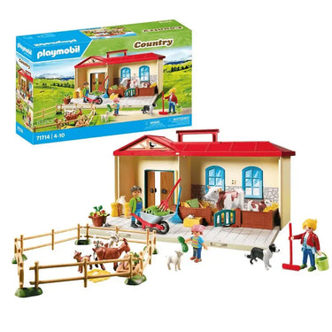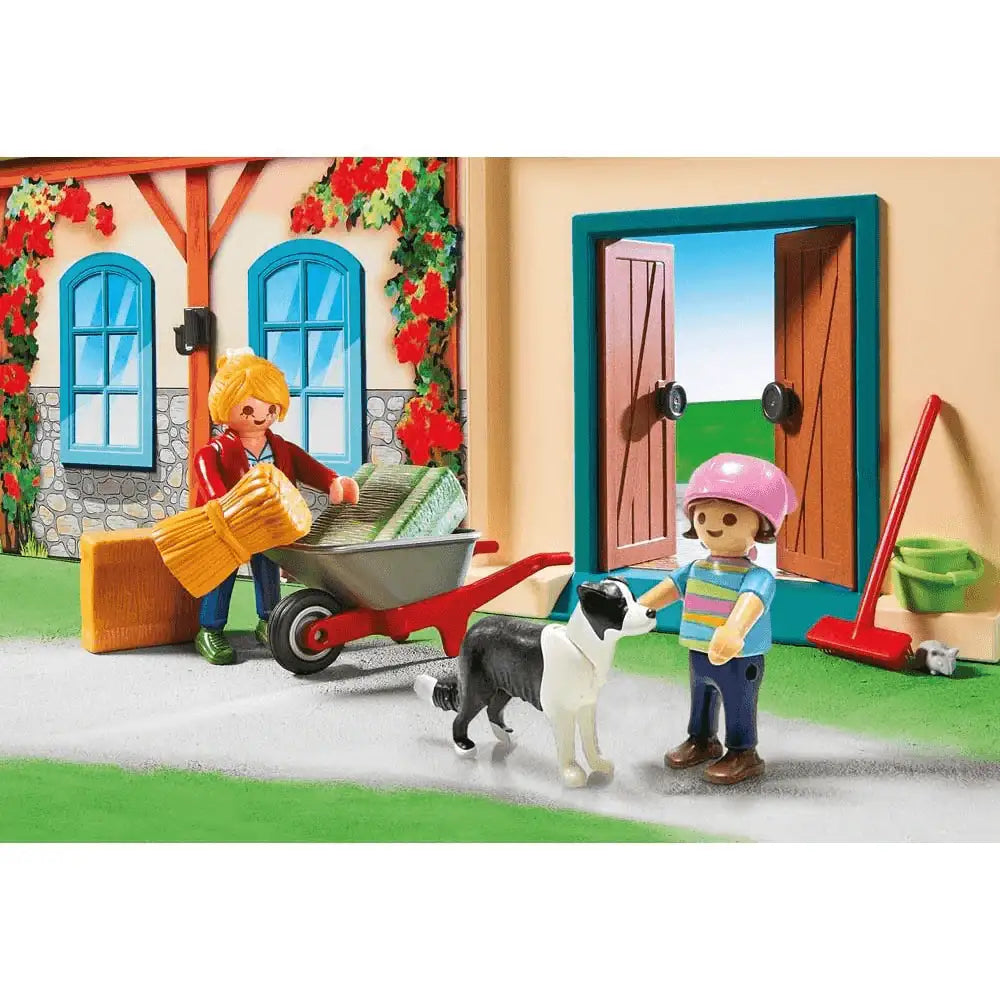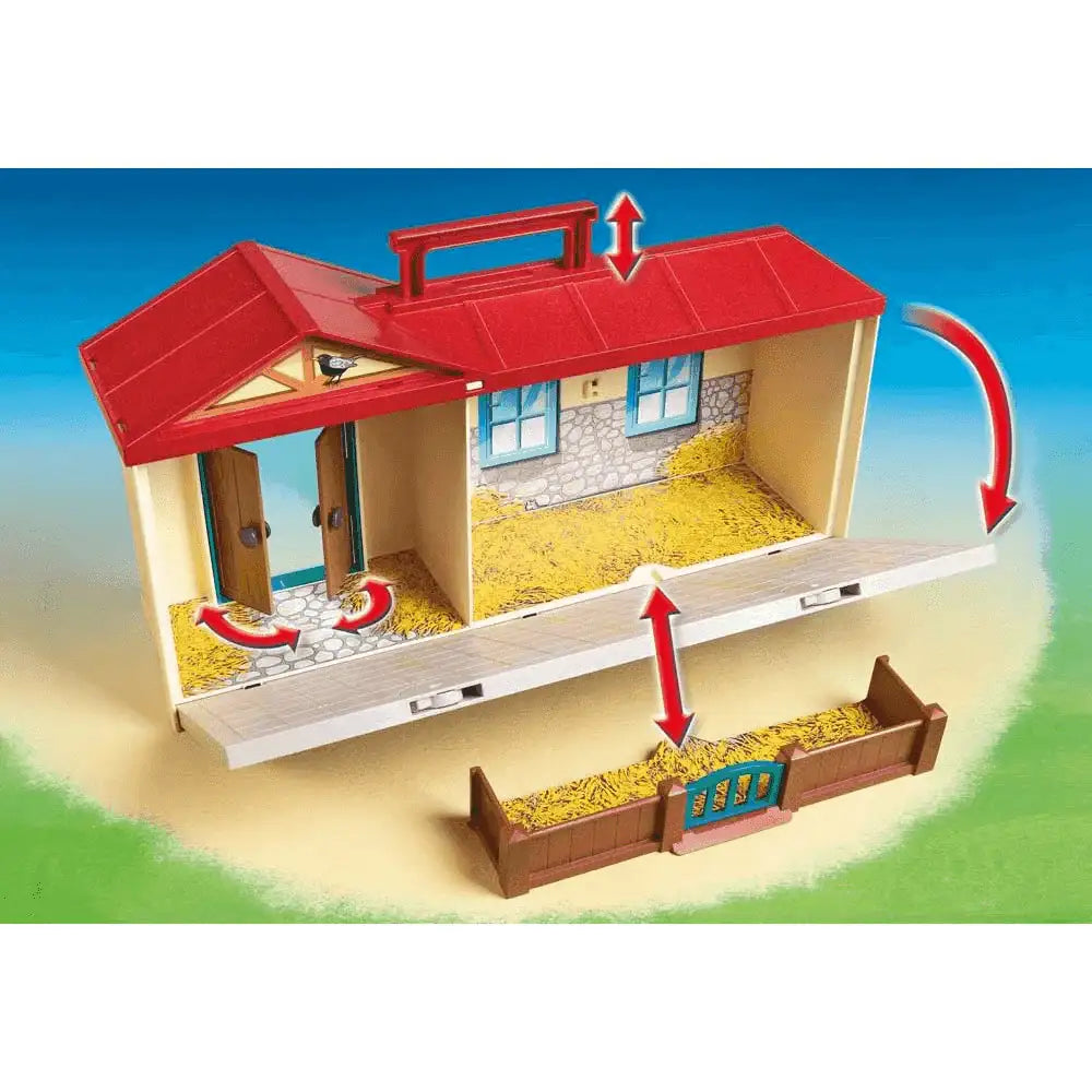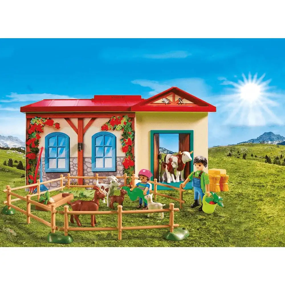 ¿Qué incluye? Es maletín y en ella puedes guardar todos los accesorios. Incluye 3 figuras (2 adultos y una niña), 2 vacas, 4 cabras, gato, 2 ratones, zanahorias, manzanas, valla, heno, carretilla y rastrillo.