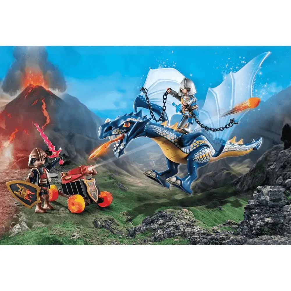 ¿Qué incluye? El dragón que surca los cielos de Novelmore. La experimentada jinete de dragón vigila de cerca la ballesta de los Asaltantes de Burnham, esquivando hábilmente los disparos de las flechas de fuego. Pero, ¿está preparada para la ardiente espada de cristal cuando se trata de un duelo en tierra? Con armas, ingeniosos sistemas de defensa y personajes originales, el mundo de los caballeros de PLAYMOBIL invitan a un sinfín de aventuras de rol. Un fantástico regalo o recuerdo para los entusiastas de los caballeros a partir de 4 años.