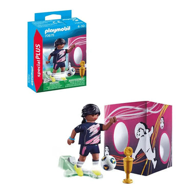 ¿Qué incluye? Futbolista femenina con pierna móvil. Incluye balón, copa y muro para practicar la puntería.