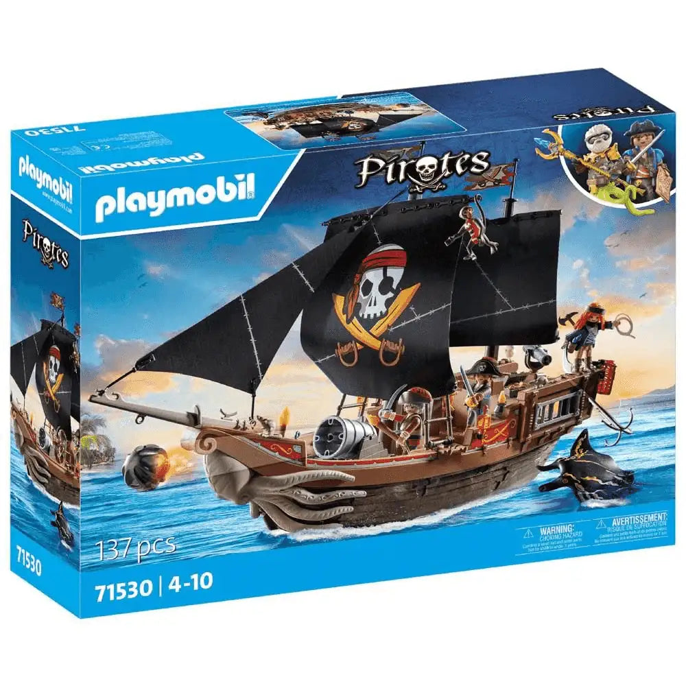 ¿Qué incluye? ¡Grandes aventuras pirata con el Gran Barco Pirata de PLAYMOBIL! Este barco flotante está equipado con cañones giratorios, un cañón grande y mucho espacio para la intrépida tripulación pirata. Gracias a los prácticos soportes para los pies, las figuras pueden estar seguras a bordo. Las velas son móviles. El emocionante mundo pirata de PLAYMOBIL no es apto para los débiles de corazón. Con personajes imaginativos, barcos fantásticos con muchas características y espeluznantes monstruos marinos, ofrece todo para juegos de rol imaginativos en la habitación de juegos. Un regalo ideal para cualquier ocasión para niños y niñas aventureros de 4 años en adelante