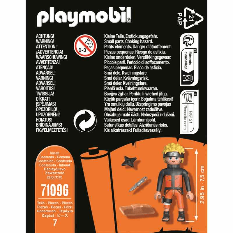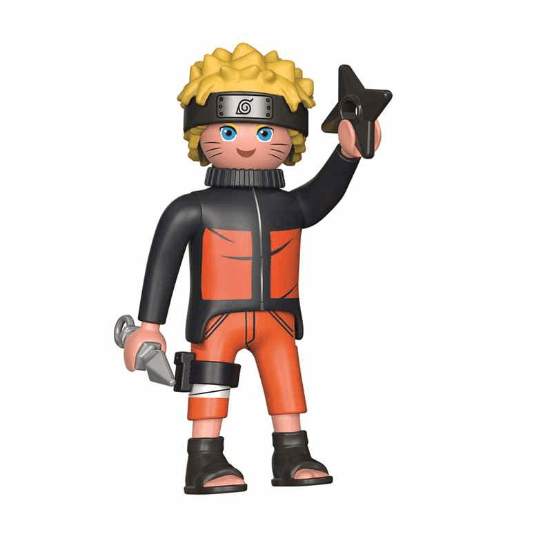Figuras: 1 Naruto; Accesorios: 1 kunai, shuriken (estrella arrojadiza)
