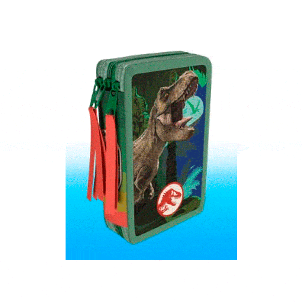 :contentReference[oaicite:15]{index=15}Con un diseño oficial de Jurassic World, este plumier no solo destaca por su estilo, sino también por su funcionalidad. Cada uno de sus tres compartimentos con cremallera contiene un conjunto completo de material escolar, incluyendo:
