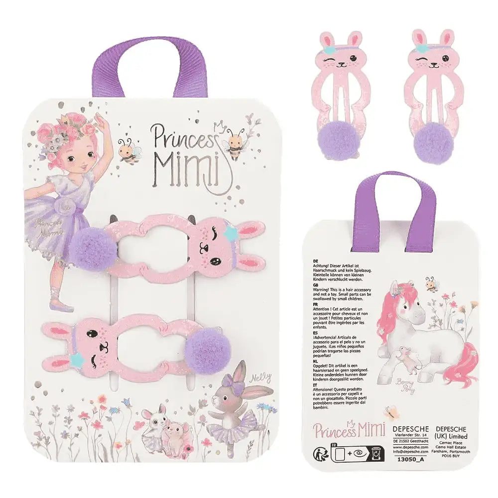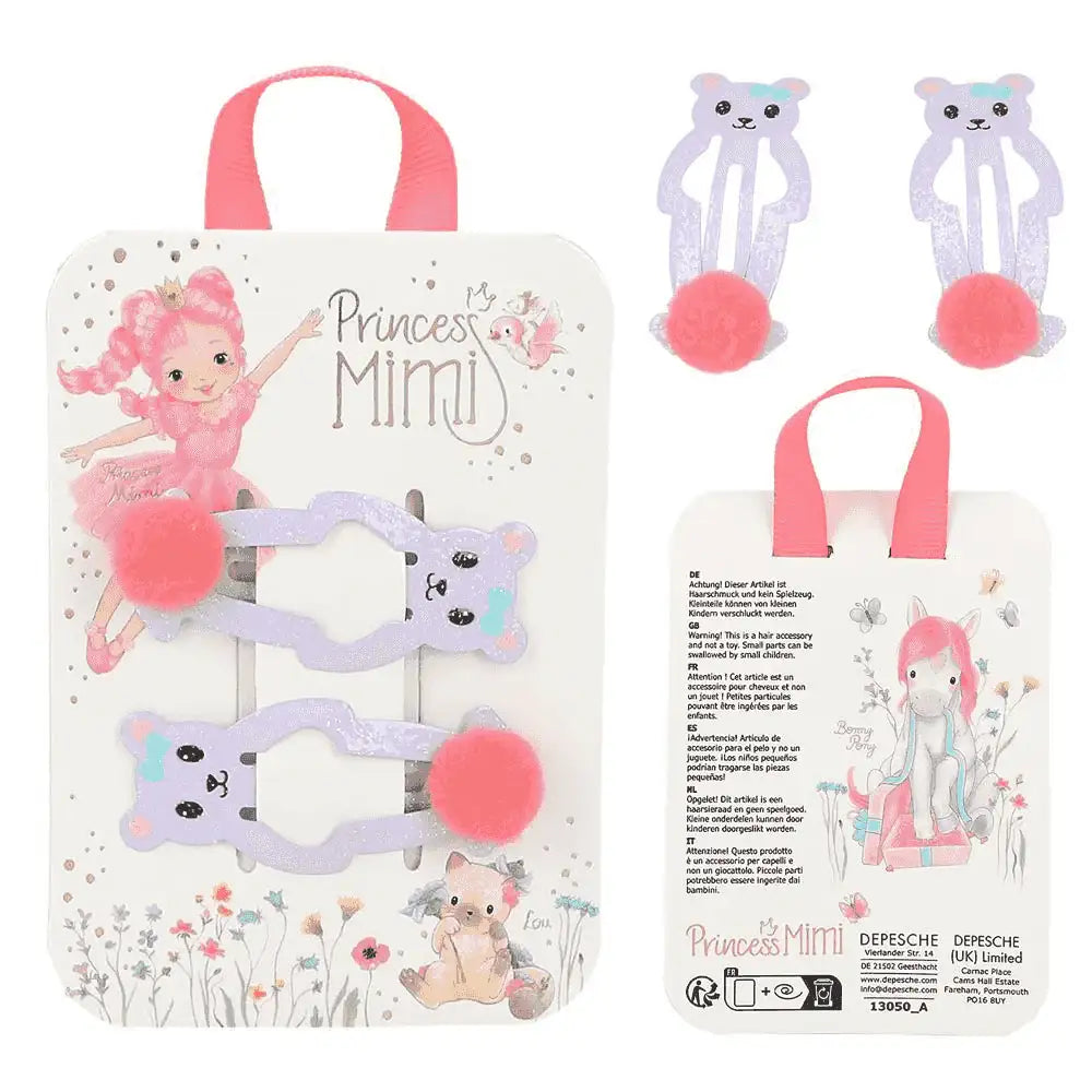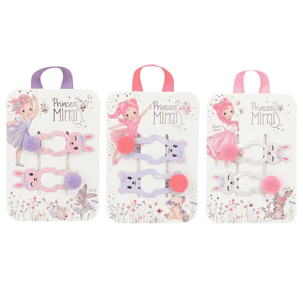 Descripción del producto: Para peinados una animalada de chulos. Las hebillas con forma de animales están rematadas en el extremo con un pompón de peluche. Tres diseños: oso color lila pálido con purpurina y pompón rosa salmón, conejo blanco con purpurina y pompón rosa, conejo rosa con purpurina y pompón lila. Cada set se compone de dos hebillas presentadas en soporte de cartulina. DePrincess Mimi.