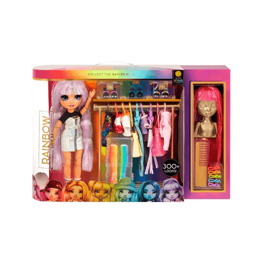 Estos juguetes de moda vienen en un cómodo y compacto empaque. Gracias a los precisos detalles de este asombroso juguete, tu hija o hijo podrán vivir la experiencia completa de jugar en un estudio de moda. El estudio viene con un perchero, muchas zapatillas y pelucas distintas. Las muñecas Rainbow HIgh se caracterizan por formar un arcoiris de colores y por ello, este juguete no solo tiene los colores del arcoíris, sino que se pueden hacer arcoíris de estilos.