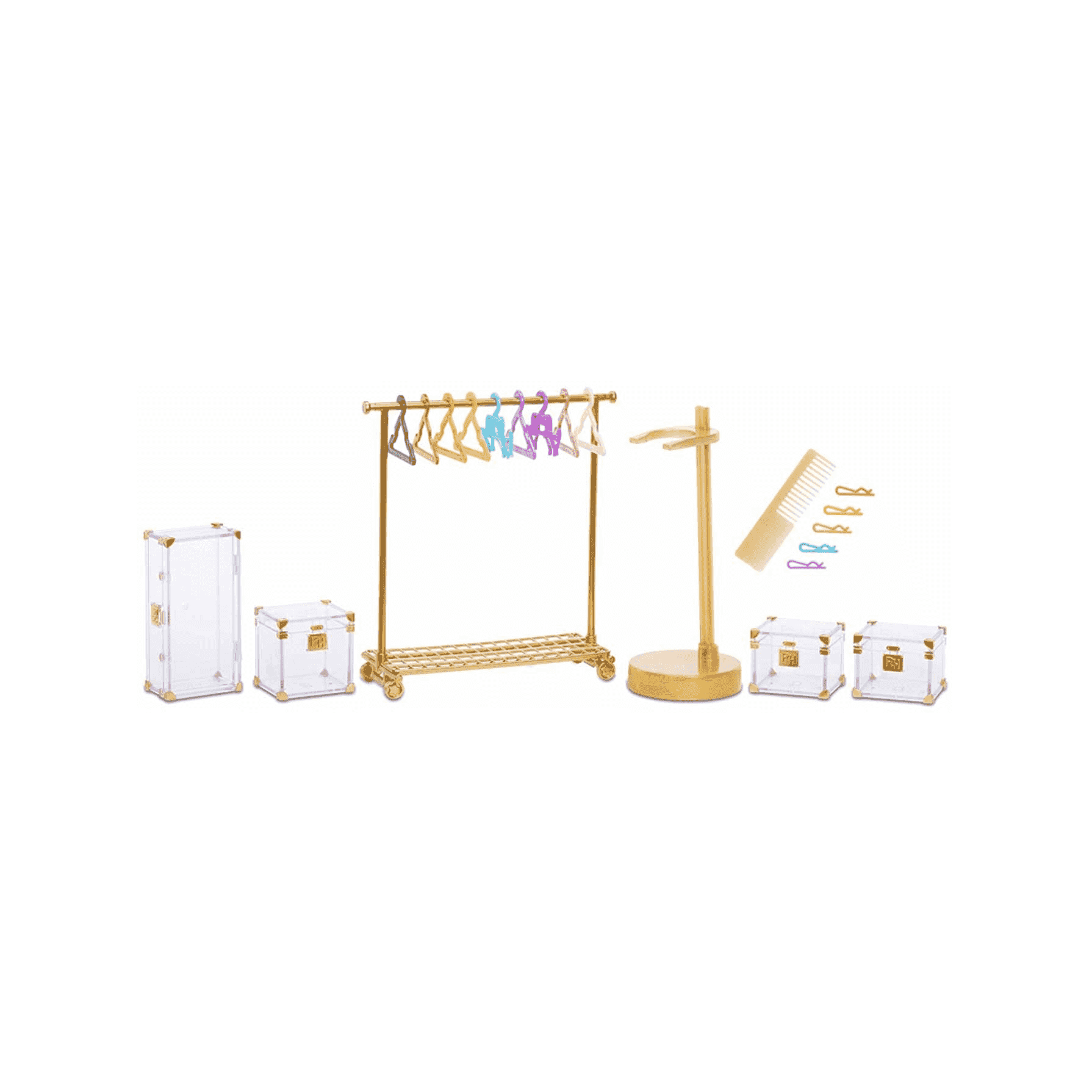 - Este paquete incluye 1 muñeca, 2 pelucas intercambiables, 5 tops, 2 faldas, 2 vestidos, 1 chaqueta, 1 sudadera con capucha, 1 par de jeans, 4 pares de zapatos, 9 perchas, 5 horquillas, 4 cajas de zapatos, 1 peine, 1 soporte de muñeca y 1 perchero.