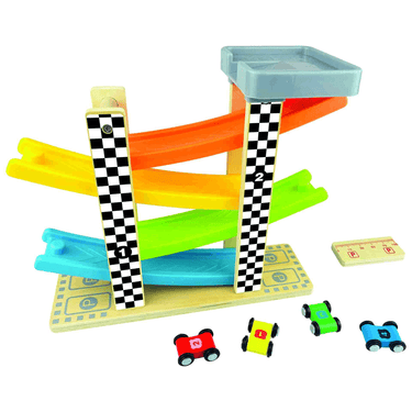 ¡Estimula el juego de tu peque con la Rampa ZigZag! Este juguete de madera incluye 4 rampas de colores vibrantes y 4 coches mini, lo que garantiza horas de diversión y entretenimiento para los más pequeños de la casa.