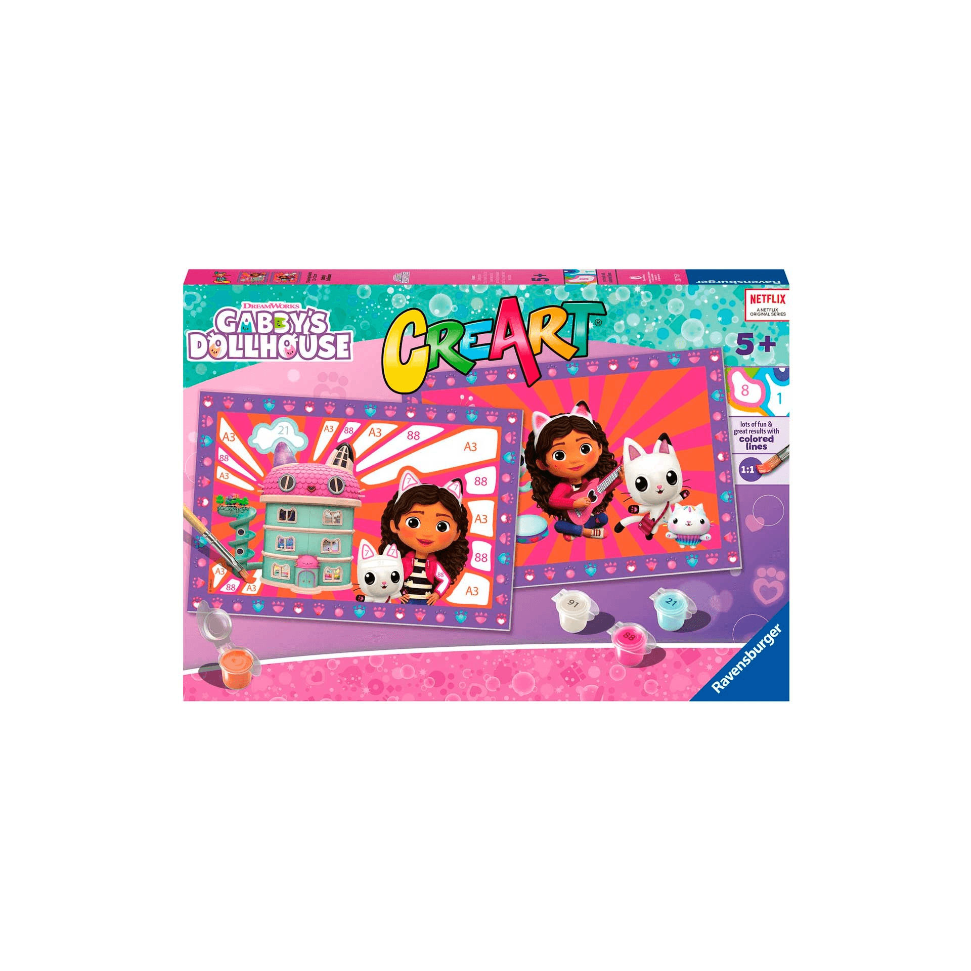 Ravensburger CreArt Serie Junior: Gabby´s dollhouse, Kit para Pintar por Números, Contiene dos Tabla