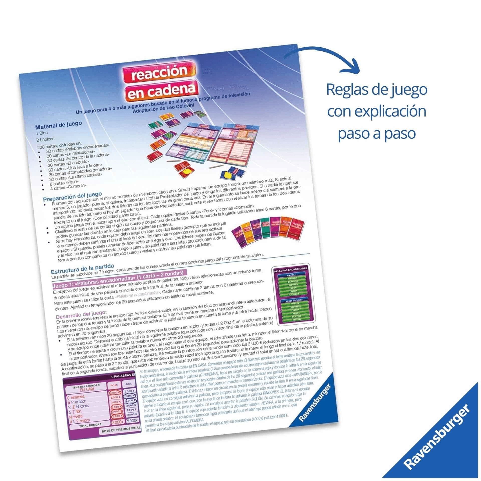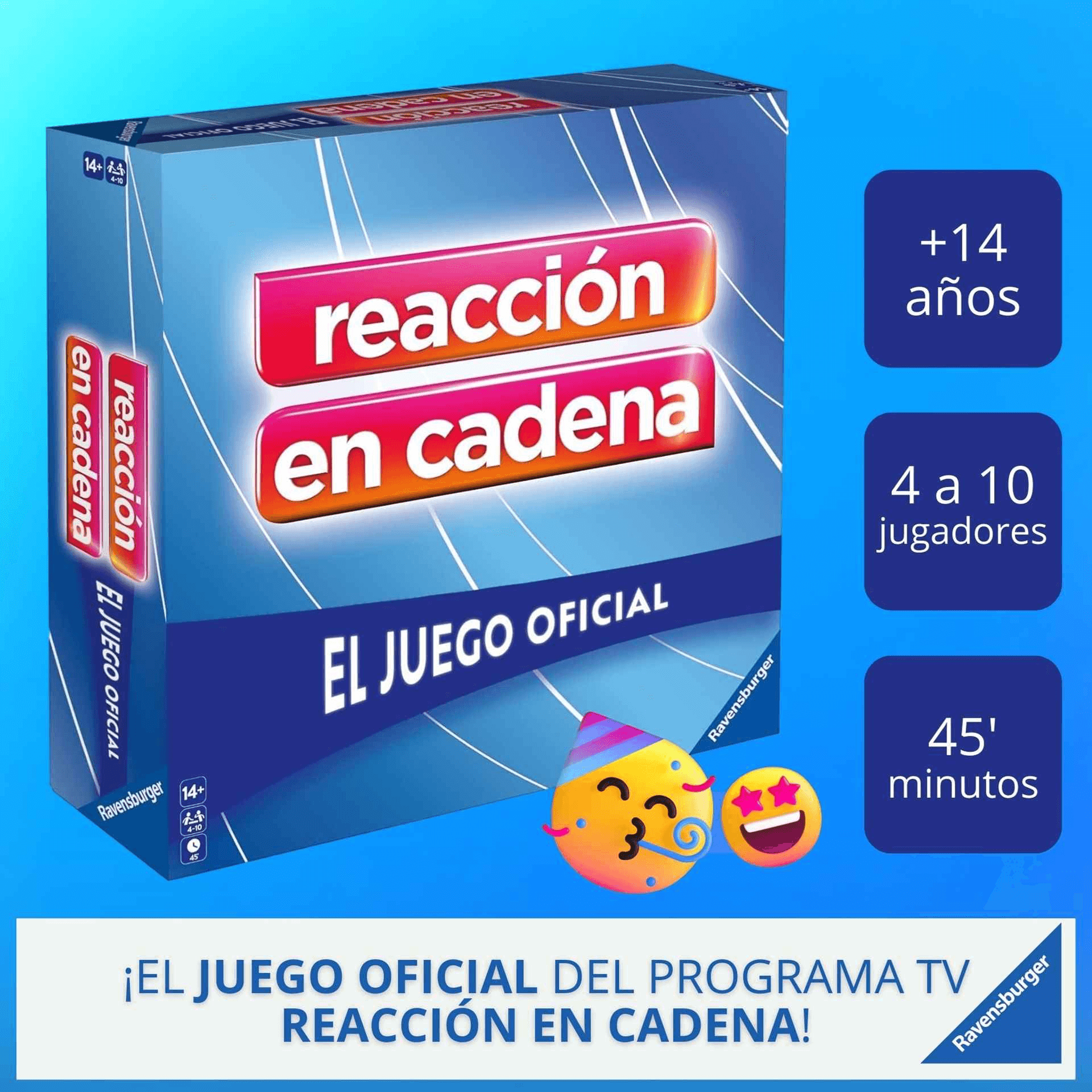 Ravensburger Reaccion a Cadena, Juego de Mesa TV, 2-4 Jugadores, 10+ Años