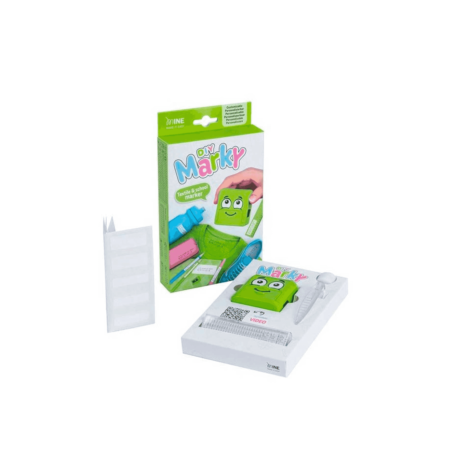 Descubre el innovador Sello Marcador De Ropa Marky Infantil Verde, diseñado para facilitar la tarea de marcar todas las pertenencias de tus niños de manera rápida y divertida. Este práctico marcador personalizable asegura una protección efectiva y duradera para la ropa y objetos escolares.