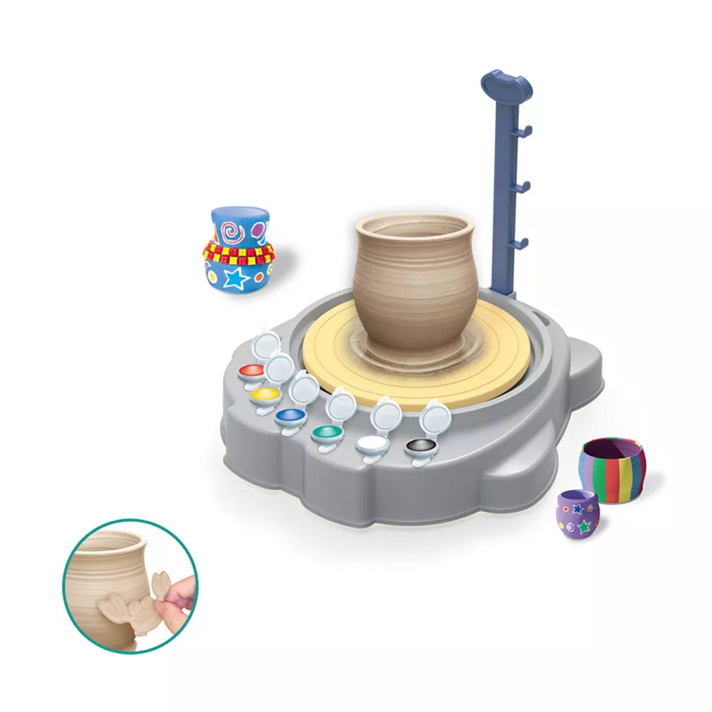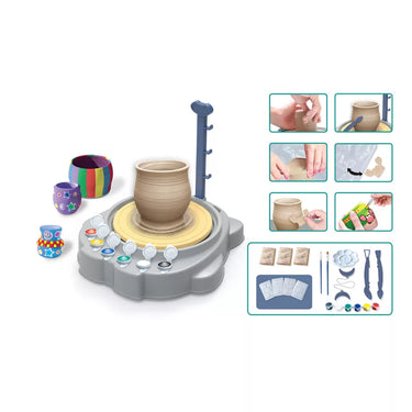 Set de alfarero con torno eléctrico y arcilla es el kit ideal para que niñas y niños descubran el arte de la cerámica de forma divertida y segura. ¡Prepárate para moldear, decorar y crear tus propias piezas únicas con tus manos!