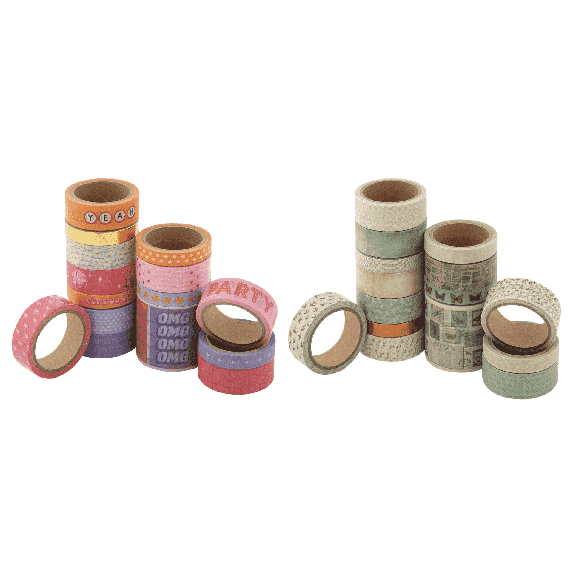 Este set incluye 15 cintas adhesivas con distintos colores, patrones y estilos: desde motivos vintage hasta mensajes divertidos, perfectos para añadir un toque único a cada proyecto. Las cintas son fáciles de cortar, reposicionar y retirar sin dejar residuos, lo que las convierte en una opción ideal tanto para peques como para personas adultas aficionadas a las manualidades.