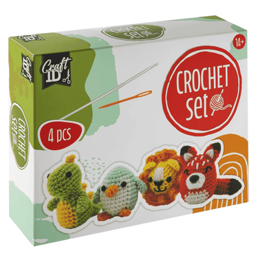 Este completo kit de crochet contiene todo lo necesario para crear 4 adorables figuras: un león con melena majestuosa, un pingüino simpático, un tierno dinosaurio y un zorro con mucha personalidad. Incluye ovillos de hilo 100% poliéster en varios colores, aguja de ganchillo, aguja de plástico, relleno, ojos de seguridad y guía visual.