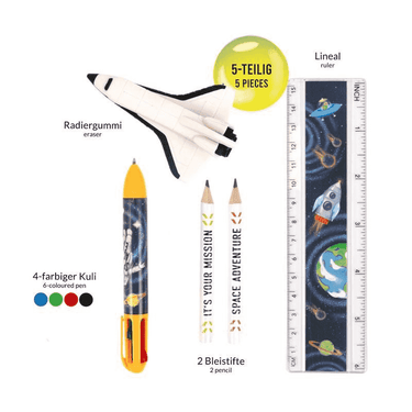 Todos los artículos presentan colores vibrantes y detalles cuidadosamente elaborados que capturan la imaginación y fomentan el interés por el universo y la ciencia. Este set es perfecto para niños a partir de 6 años, ya que combina funcionalidad con una temática apasionante, haciendo que el aprendizaje sea una aventura.