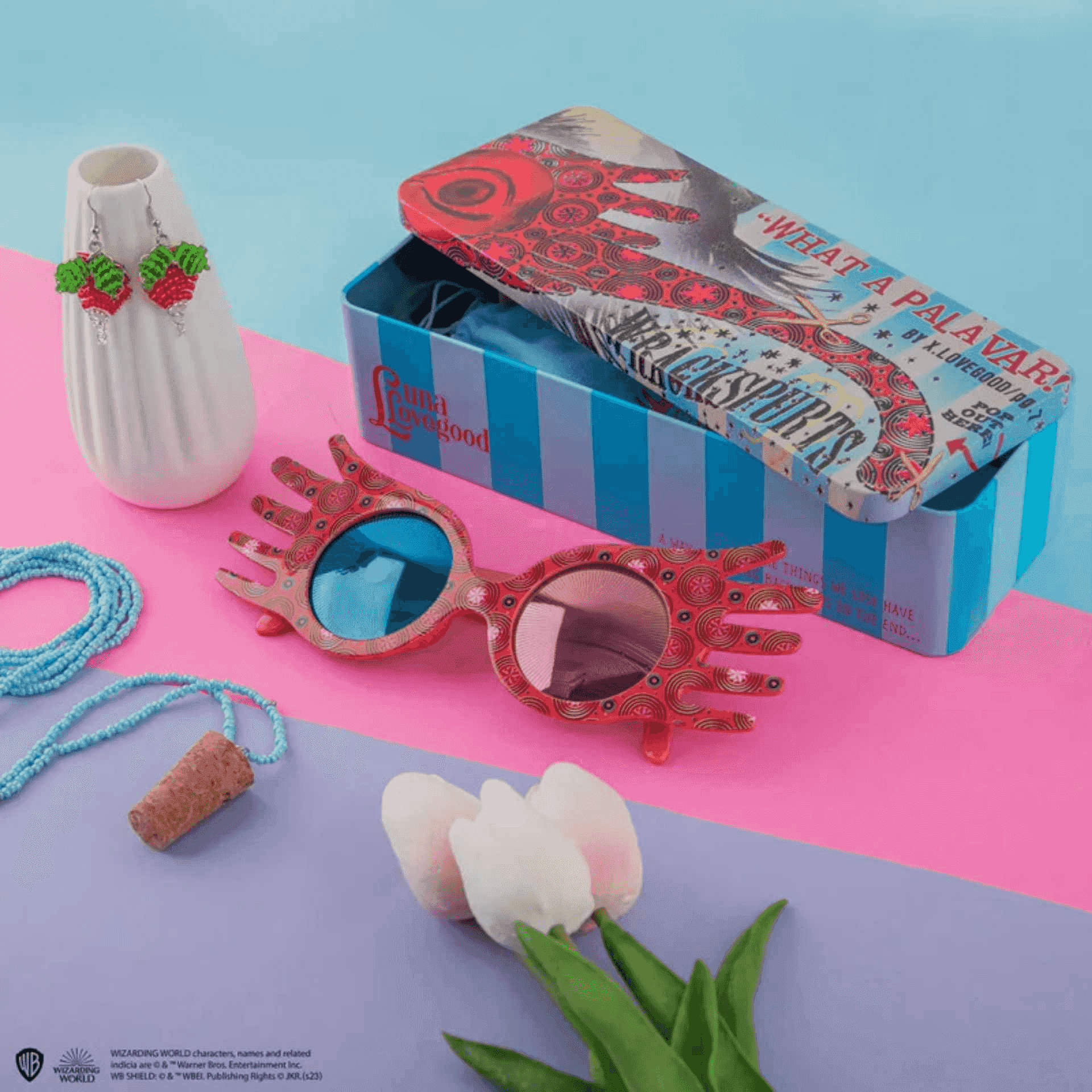 ¿Eres fan del universo Harry Potter? Este set de espectrogafas de Luna Lovegood es un imprescindible. Con sus gafas de colores vibrantes, pendientes de rábano y collar con tapón de corcho, te sentirás parte del mundo mágico. Todo presentado en una caja metálica única inspirada en 'El Quisquilloso'.