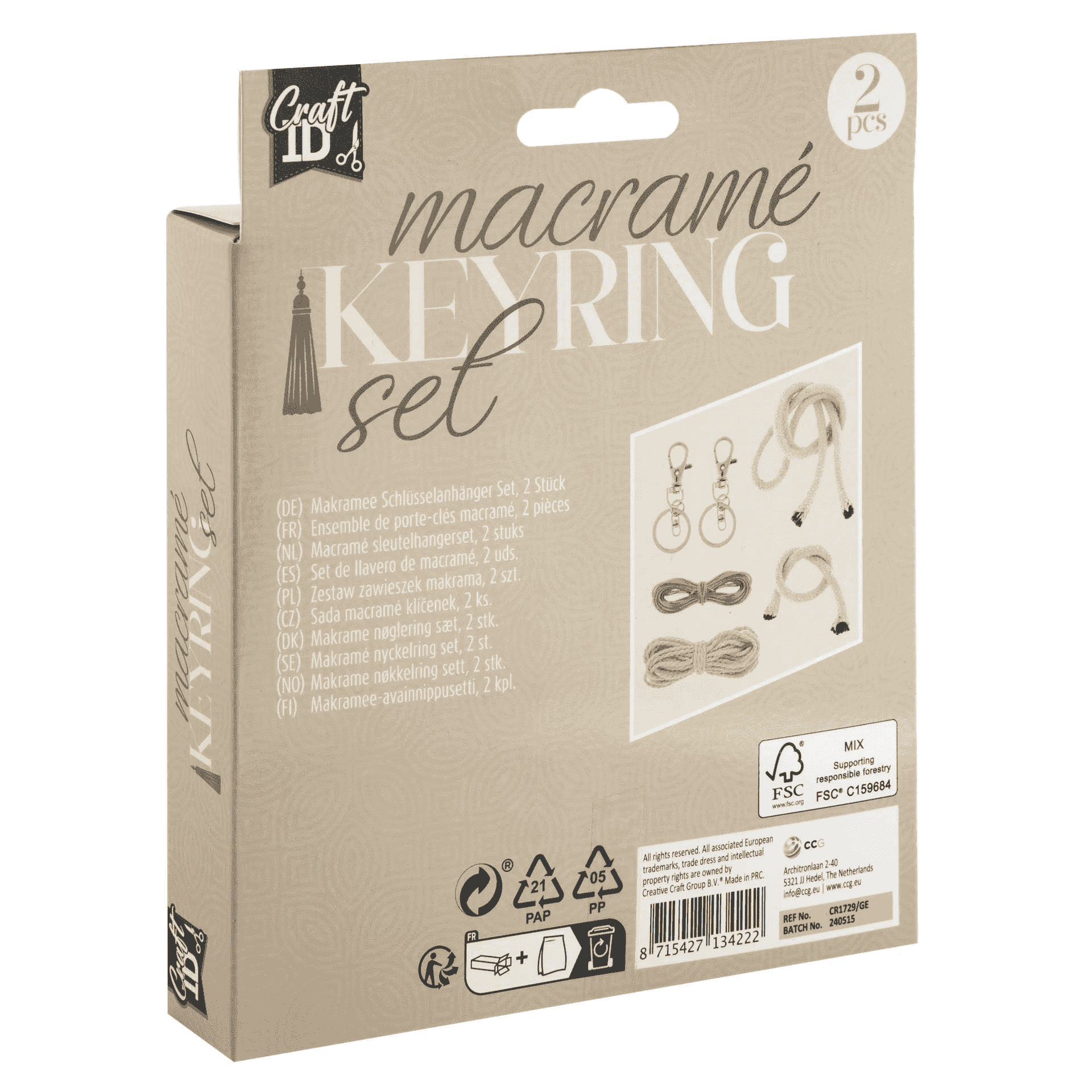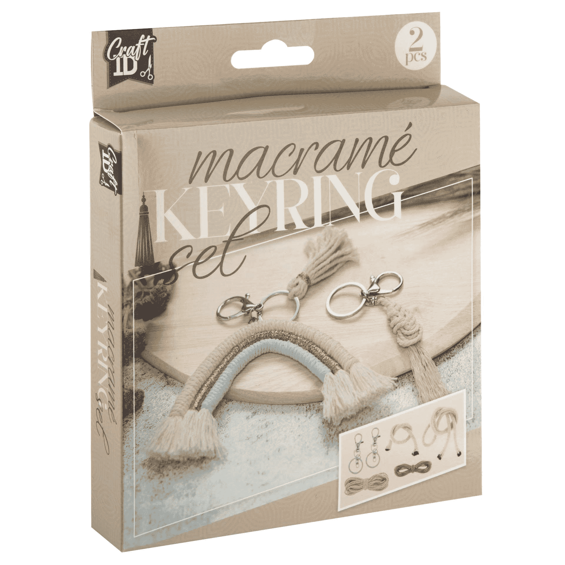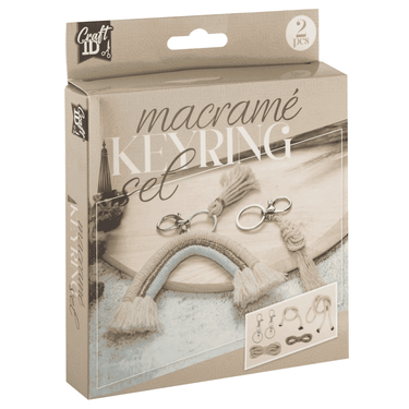 ¡Crea tus propios llaveros boho con este set de macramé! Este completo kit de Craft ID incluye todos los materiales necesarios para confeccionar dos llaveros de macramé con un diseño natural, moderno y con mucho estilo.