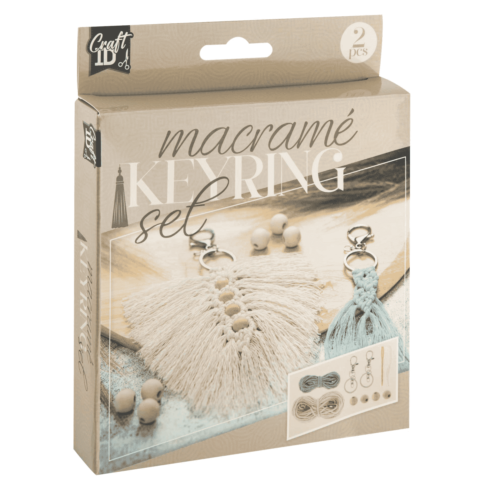 ¡Crea tus propios llaveros boho con este set de macramé! Este completo kit de Craft ID incluye todos los materiales necesarios para confeccionar dos llaveros de macramé con un diseño natural, moderno y con mucho estilo.