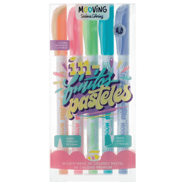 Colorea con suavidad: Marcadores Microfibras Mooving Pastel x5