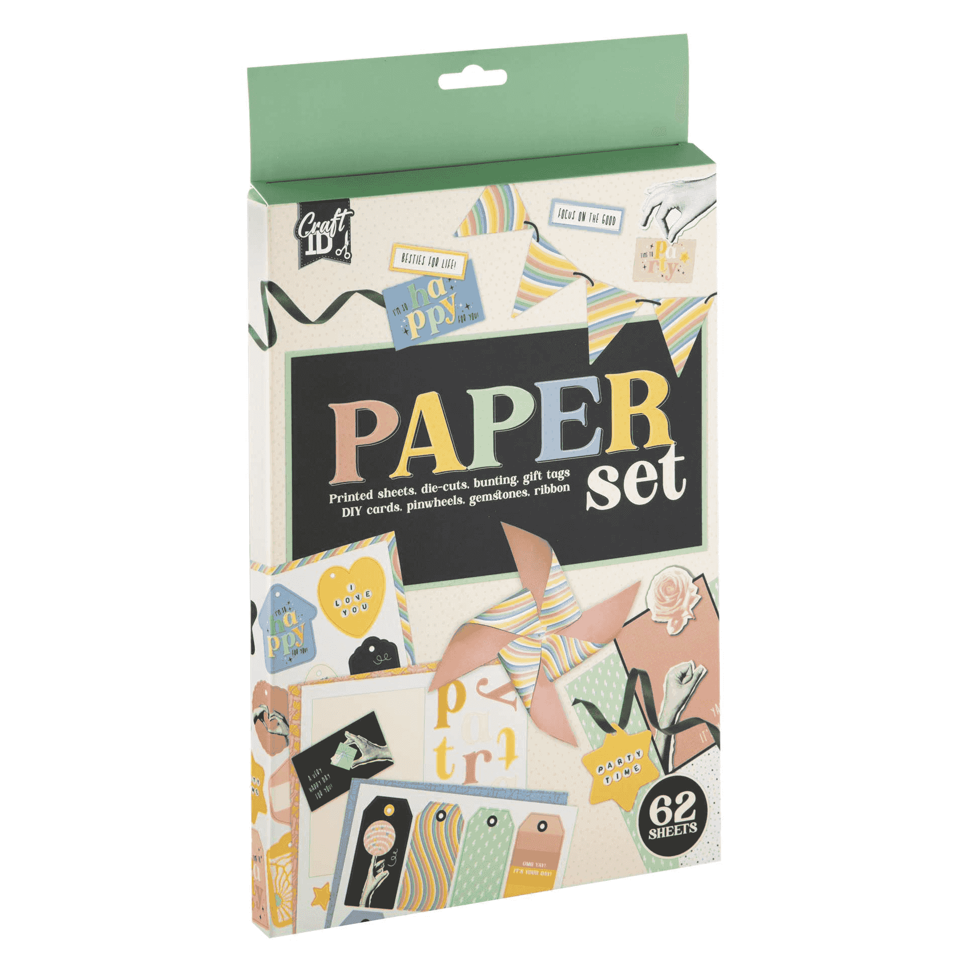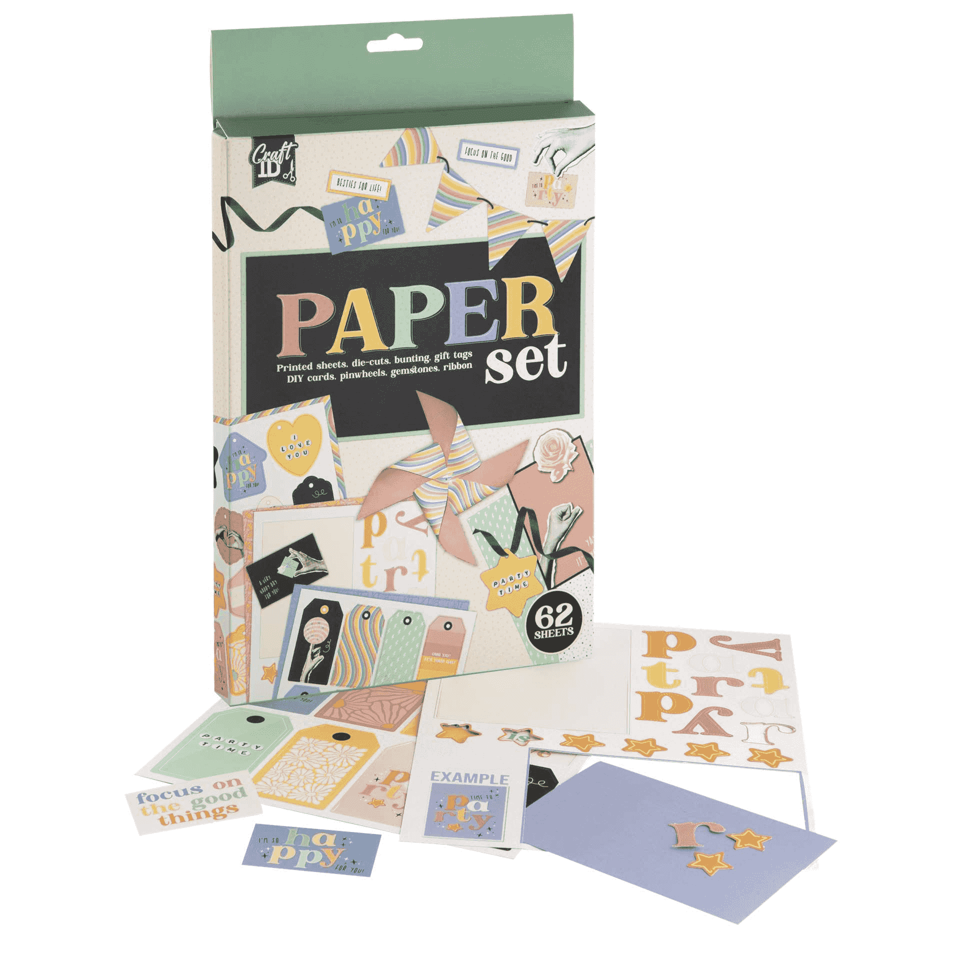 ¿Qué incluye? Nada menos que 62 elementos: hojas impresas con diseños alegres, letras para crear mensajes, troquelados decorativos, tarjetas para montar, pegatinas, cintas de tela y gemas adhesivas para dar un toque brillante a cada creación. Una variedad pensada para estimular la imaginación y crear sin límites.
