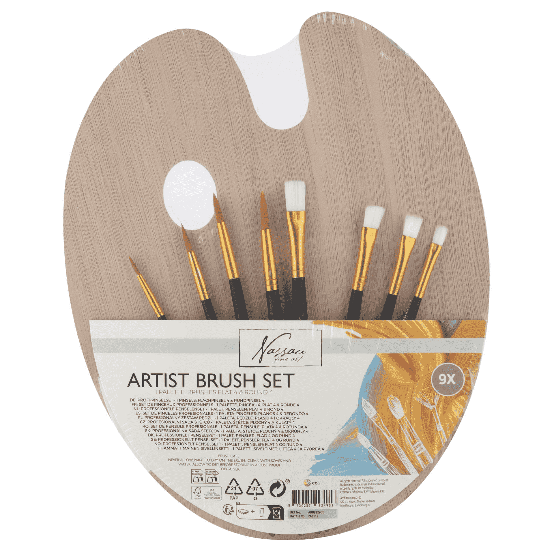 Set de Pinceles y Paleta de Madera Nassau Fine Art (9 piezas)