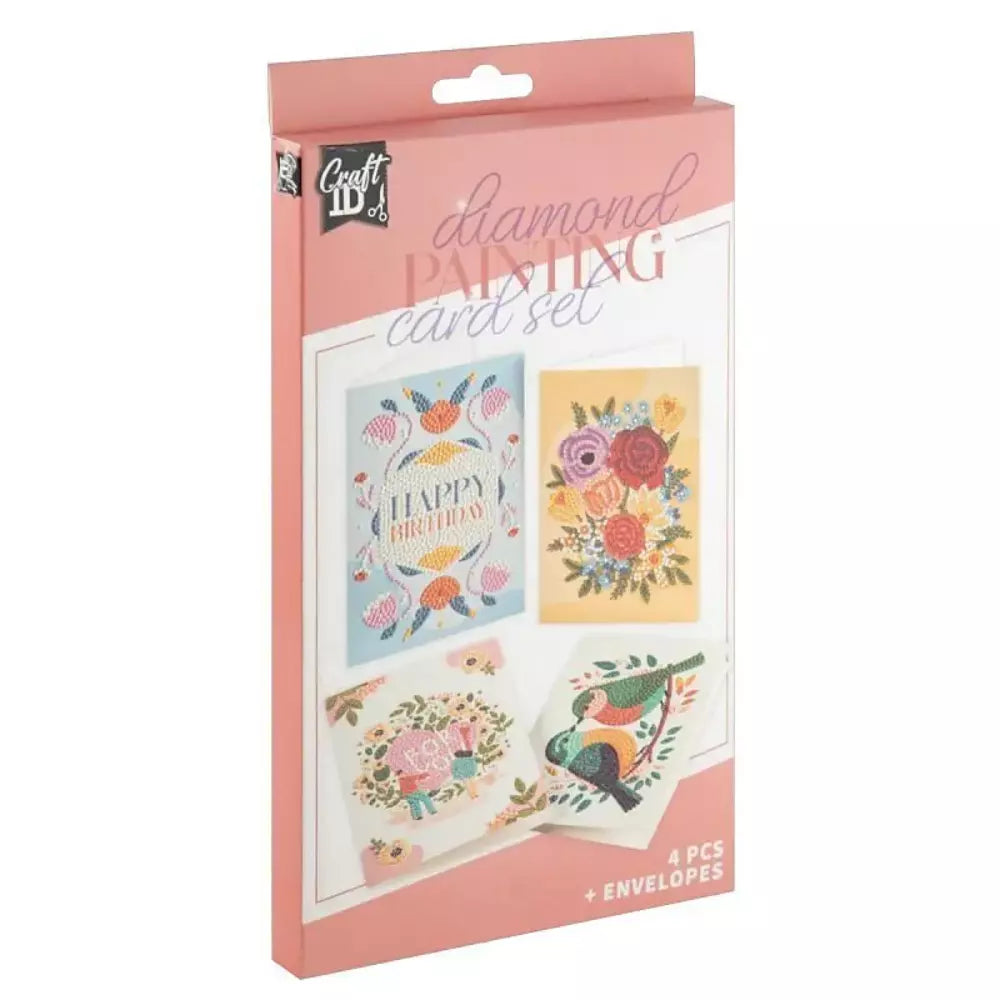 Set de Tarjetas Diamond Painting – 4 Diseños con Sobres