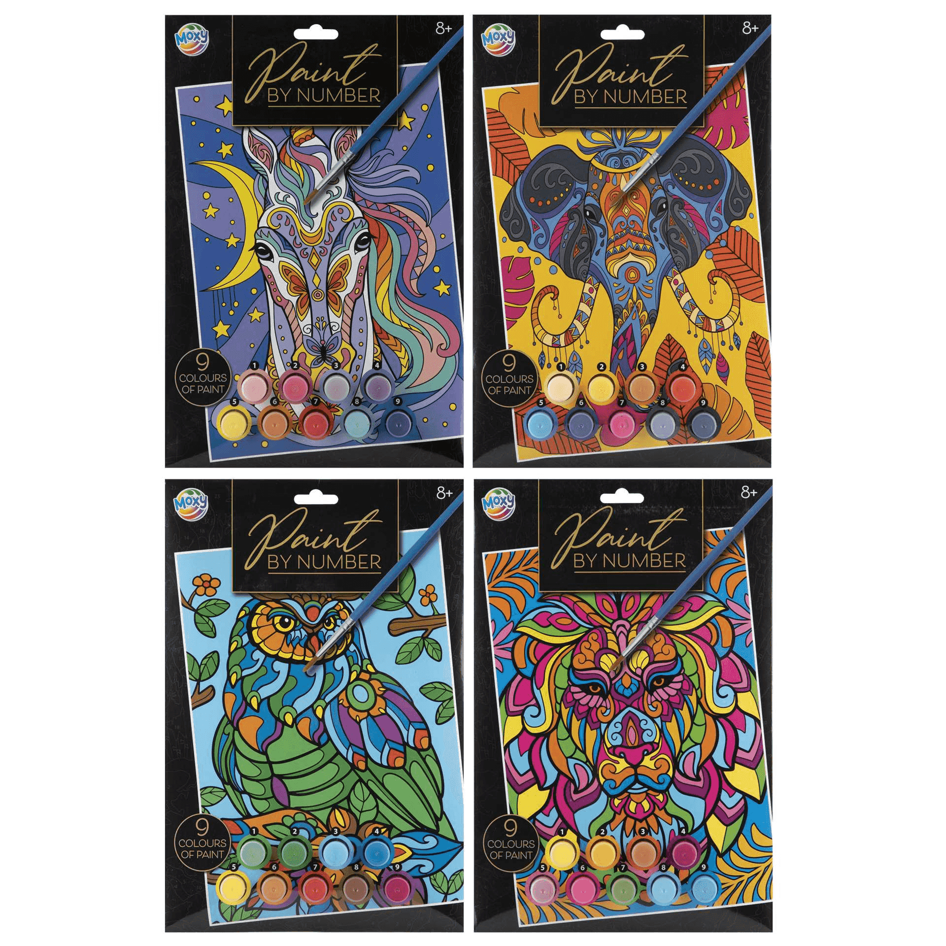 Set Pintar por Números en Cartulina A4 con Pinturas y Pincel | 9 Colores | Modelos Surtidos