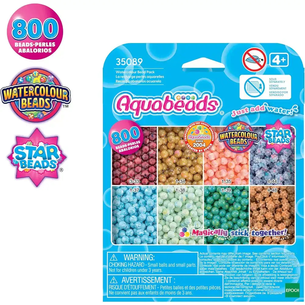 ¿Ya tienes tu set de Aquabeads y te estás quedando sin cuentas? ¡No pasa nada! Con el Set Recarga Abalorios Acuarela podrás seguir creando sin parar. Incluye 800 cuentas mágicas con un efecto acuarela único que aporta un toque artístico a cada figura que hagas. Y como siempre, ¡solo necesitas agua!
