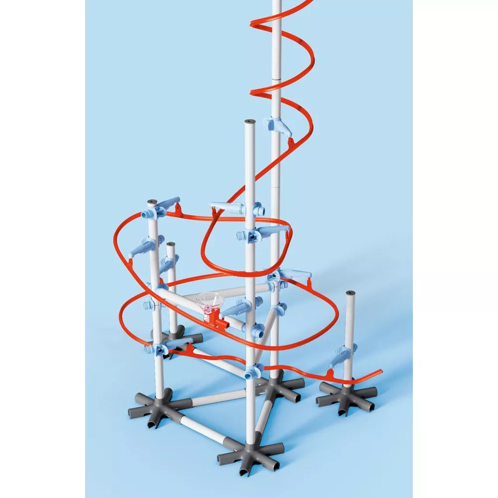 - Variedad de elementos: rieles, conectores, soportes, plataformas y piezas especiales para descensos, giros y zonas de aterrizaje.